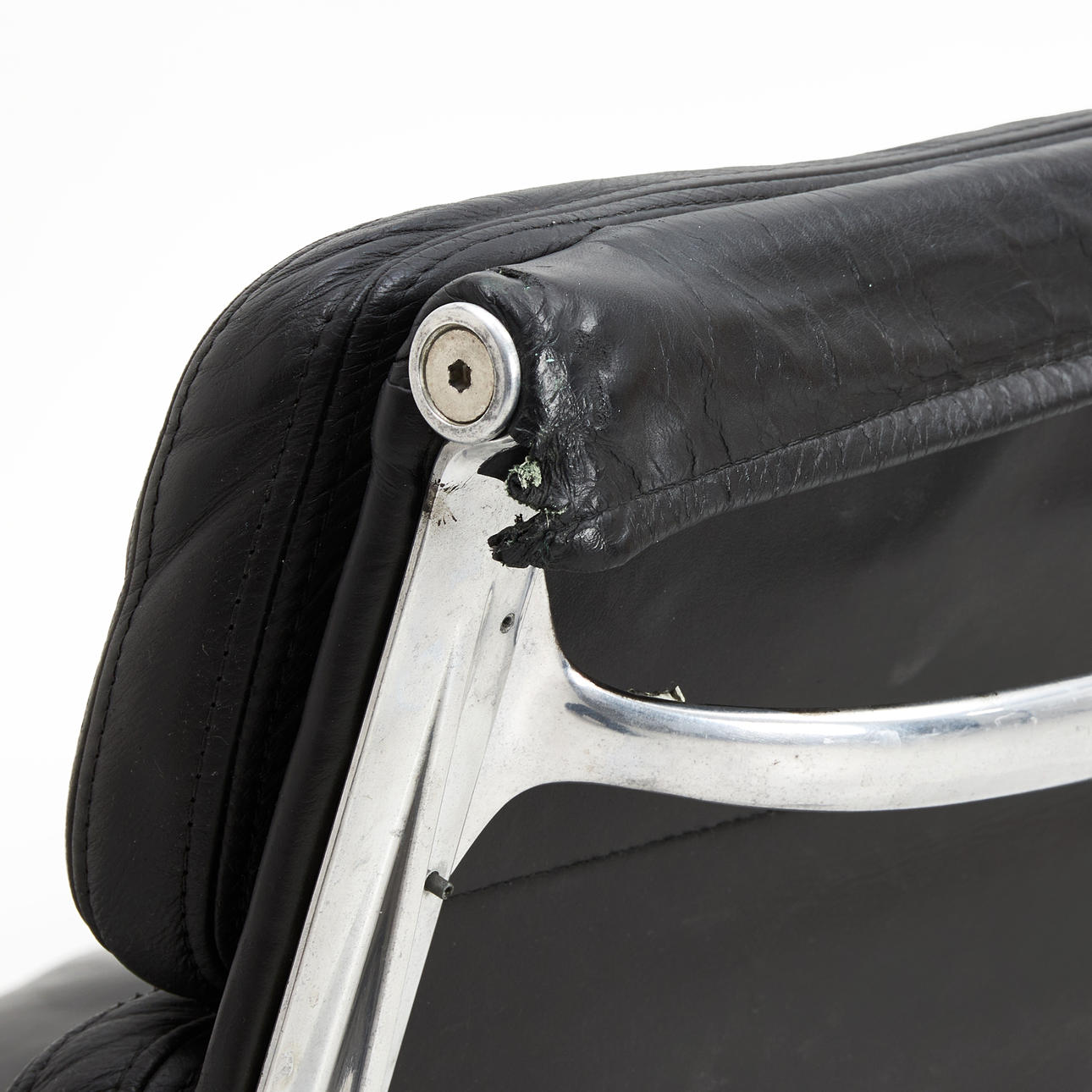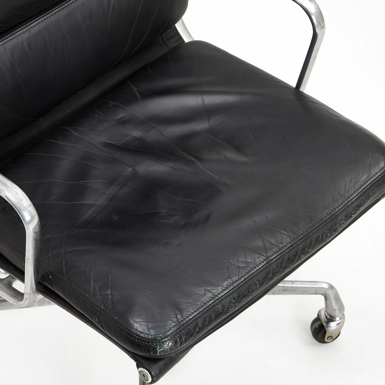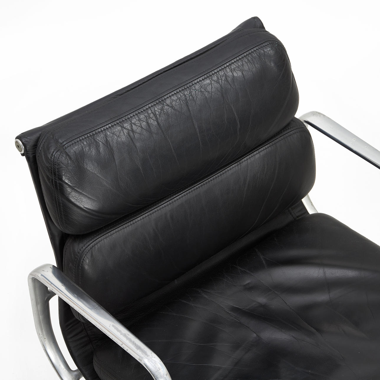 3359097. CHARLES & RAY EAMES. Skrivebordsstol, „EA217", Soft pad Stol, sort læder, forkromet stel, Hermann Miller, fremstillet 1980'erne.