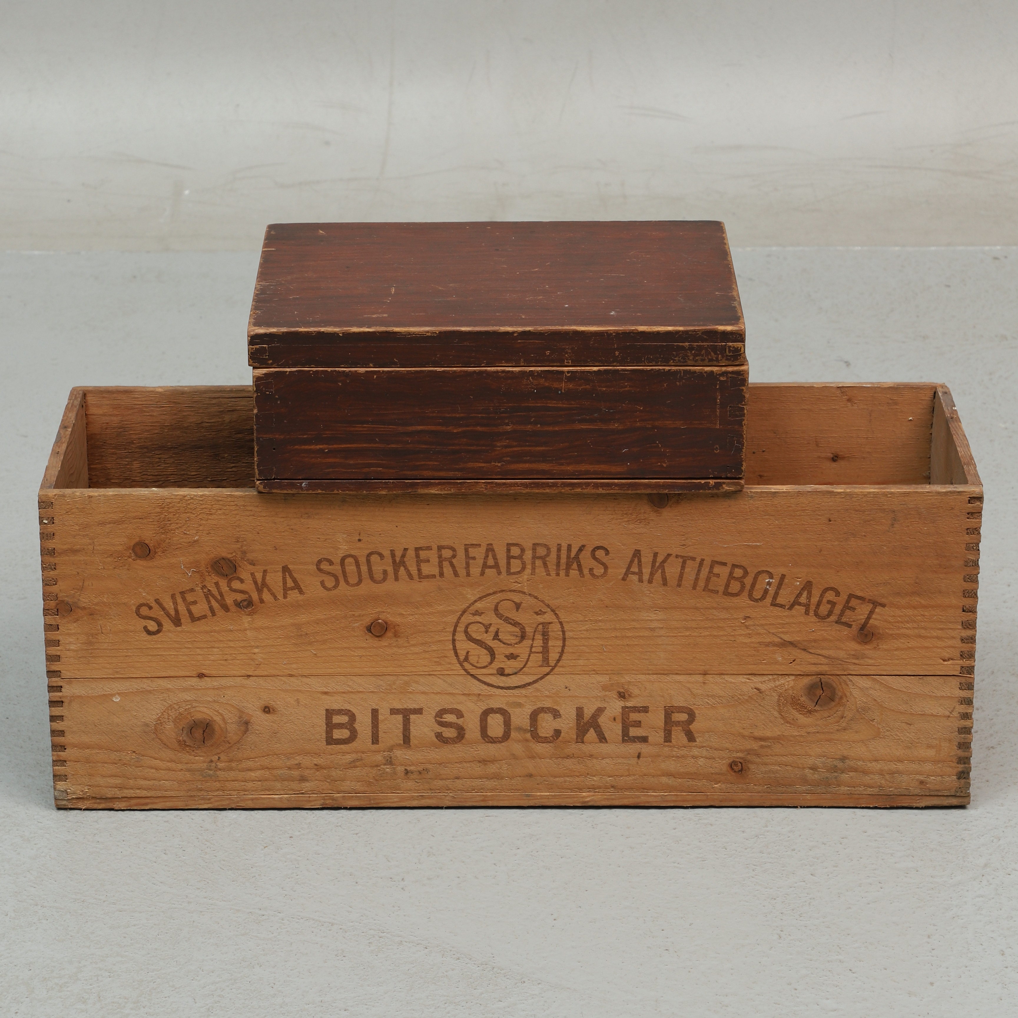3359525. SUKKERKASSER, 2 stk, træ.
