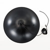Sort lakeret metalplade. Mærket. Diameter ca. 60 cm, højde ca. 30 cm.