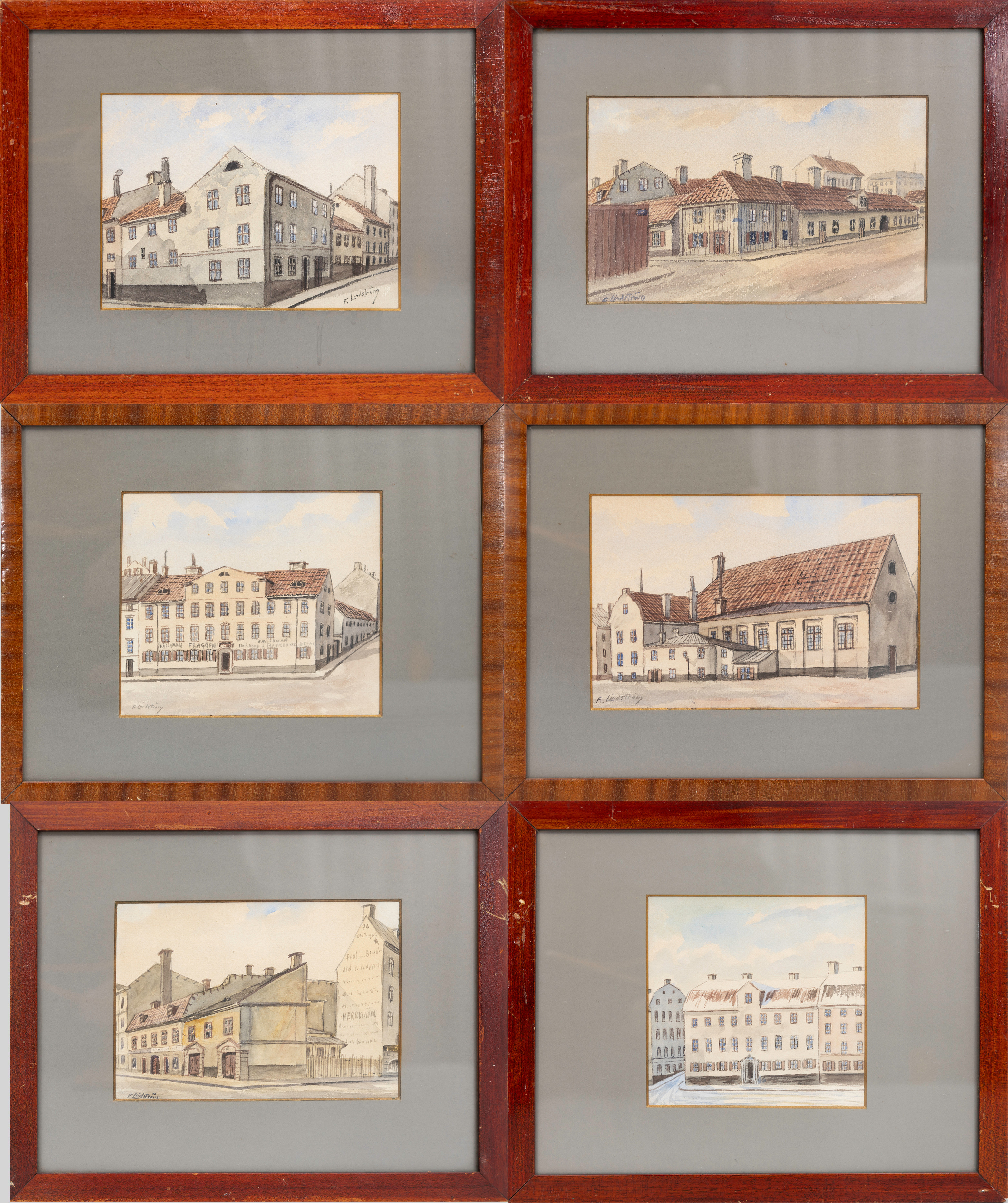 3368906. FRANS LINDSTRÖM, akvareller, 6 st, signeret.