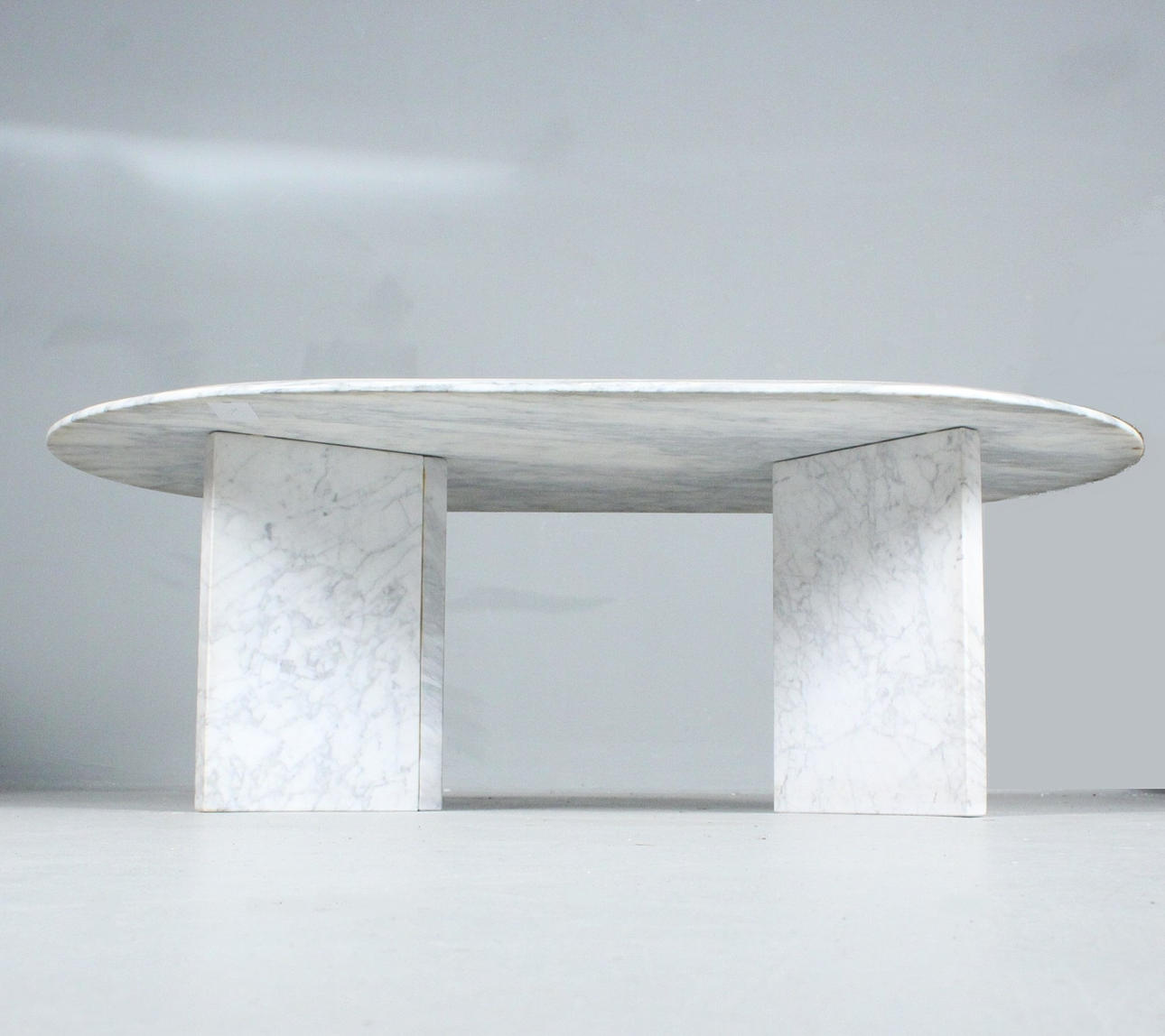 Ovalt sofabord/sofabord lavet af hvidgrå marmor, løs top,