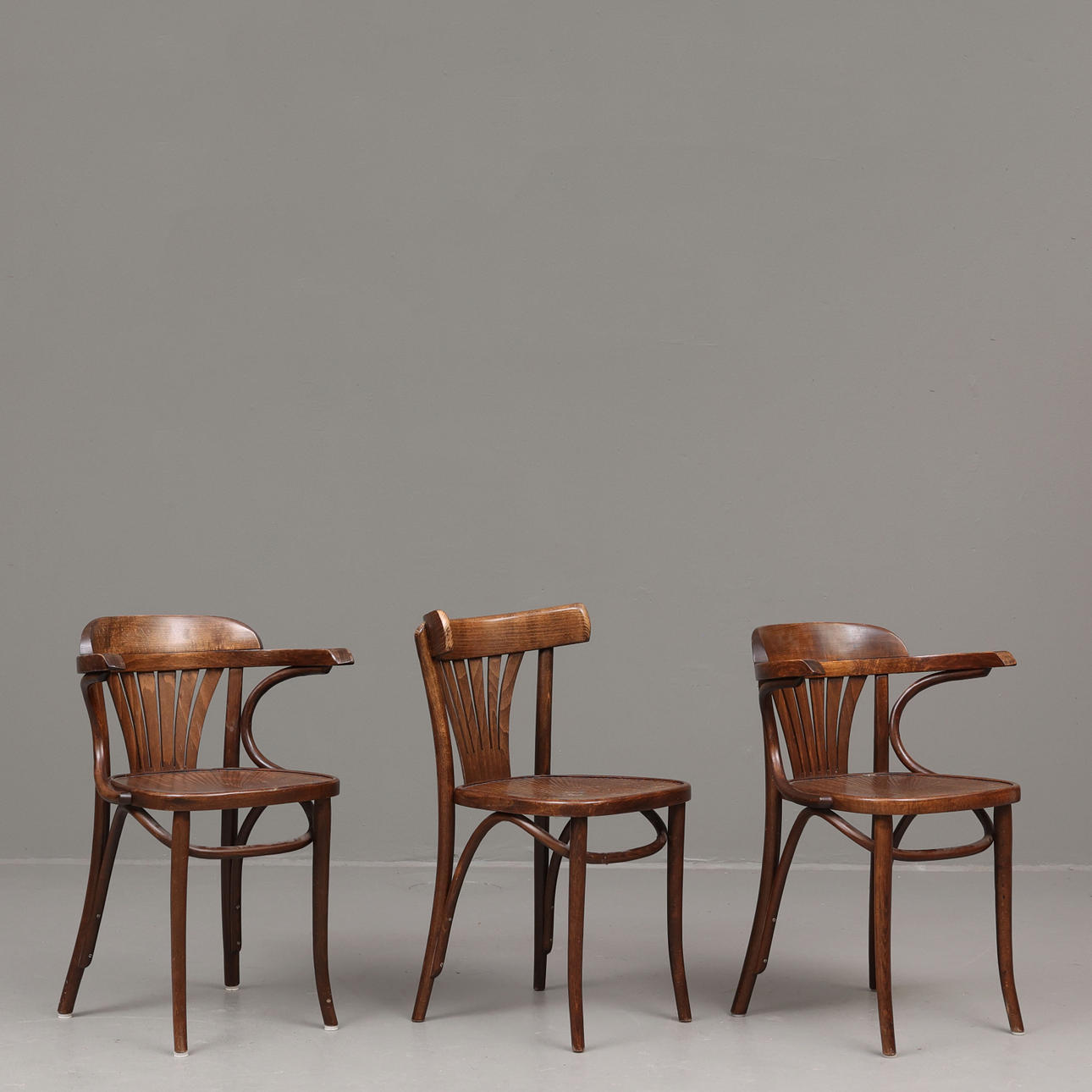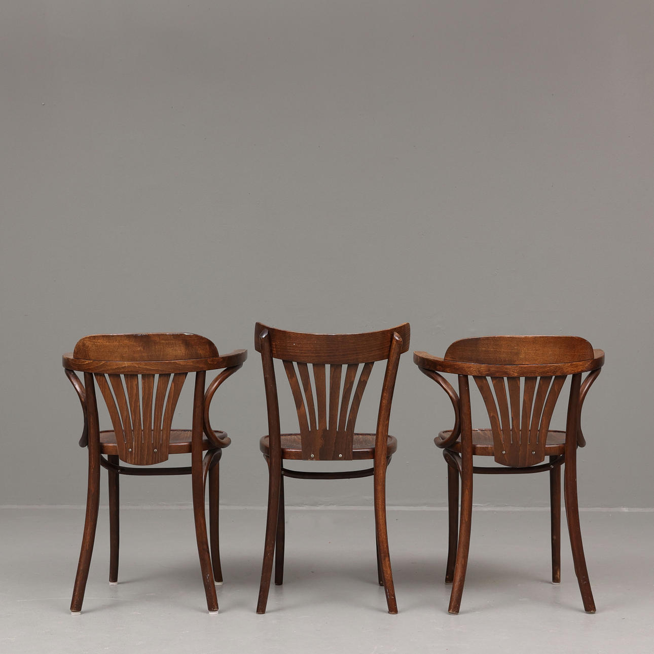3 stole i thonet stil, to forskellige modeller.