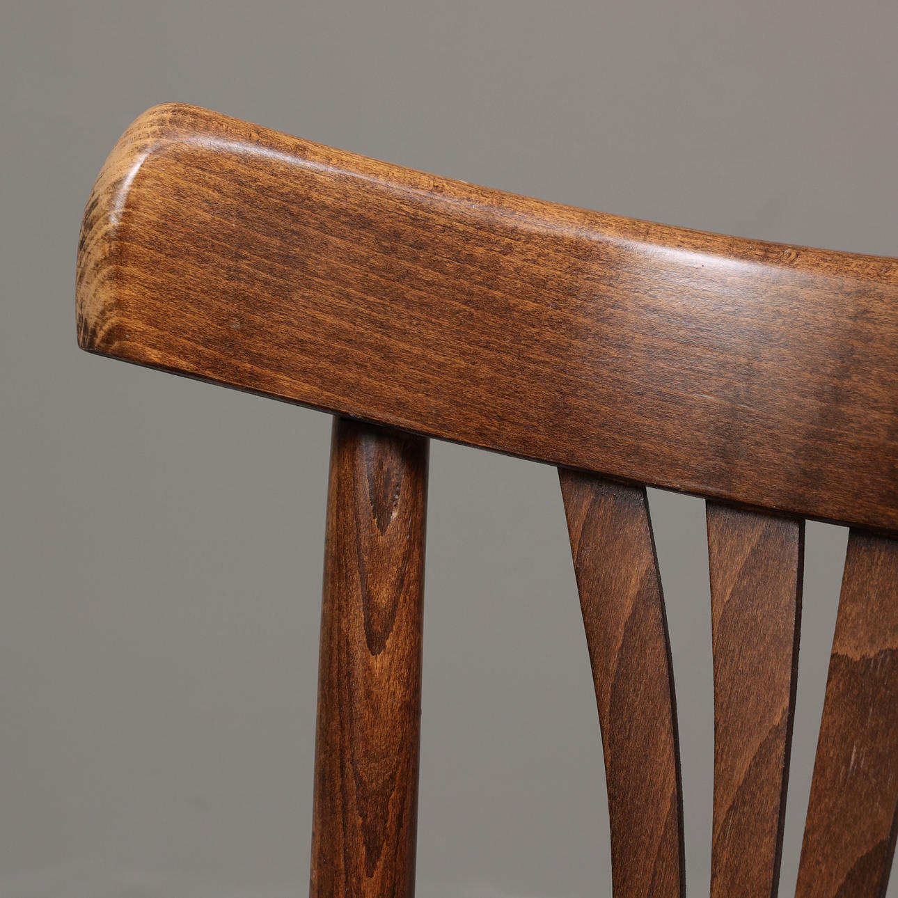 Ramme i bøjet træ, sæde/rygbakke i støbt krydsfiner. Alle mærket ZPM Radomsko.