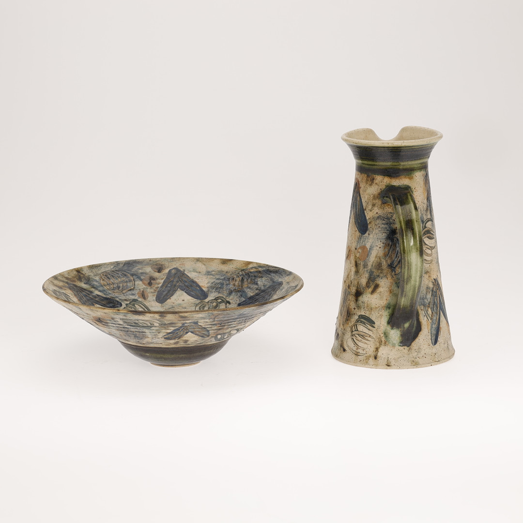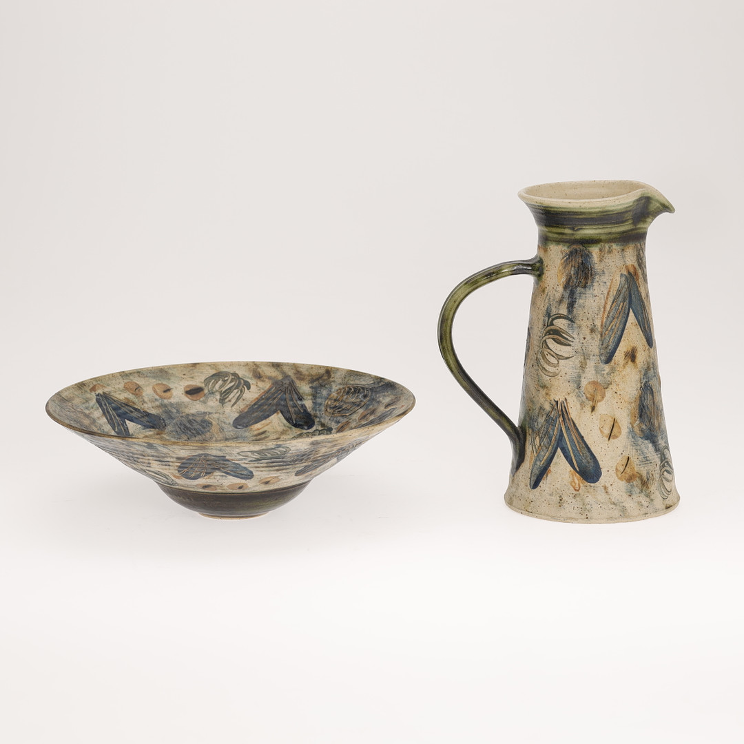 3372172. ULLA MØLLER. Skål og kande, eget værksted, stentøj, Danmark (2).