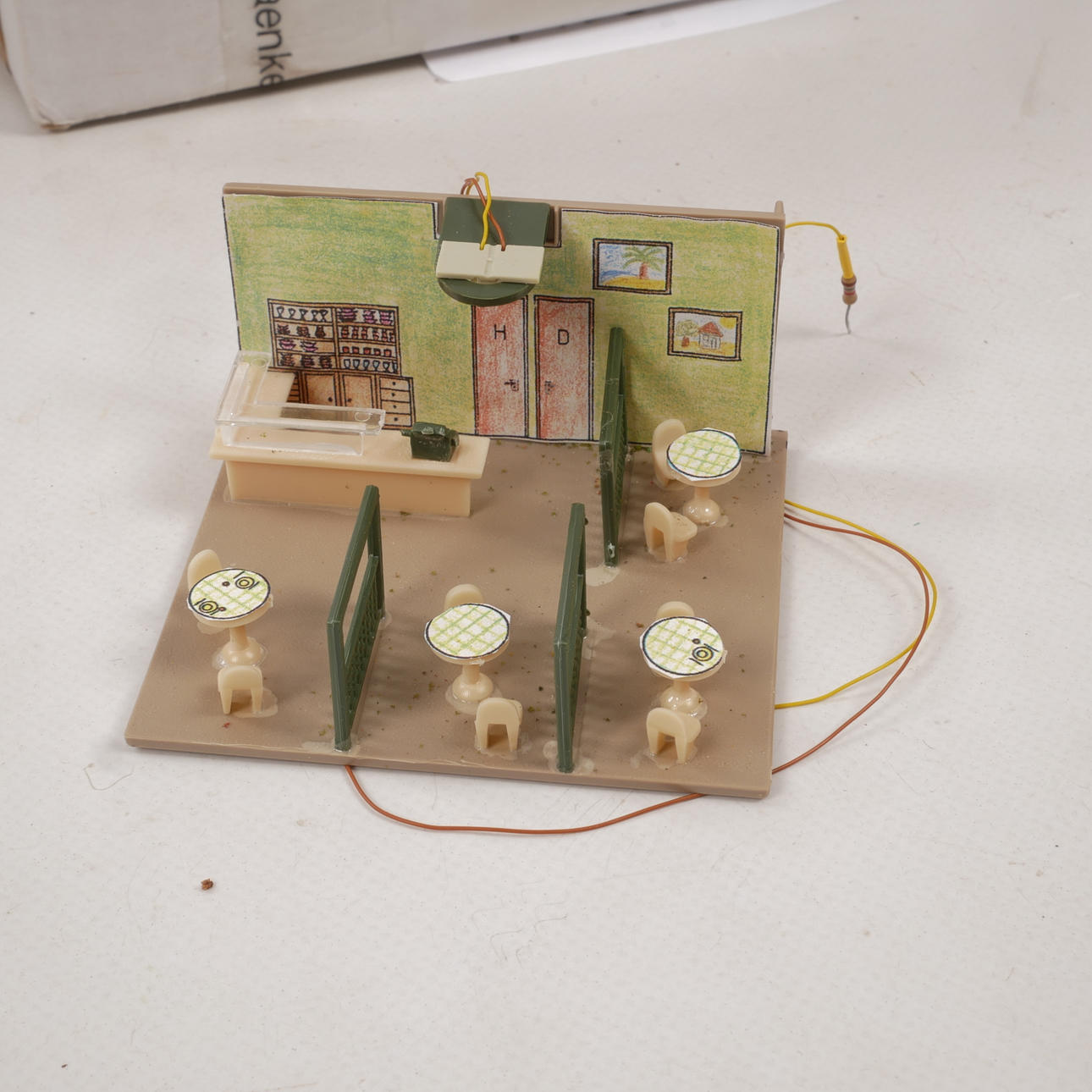 Div lamper og pizzeria med belysning.