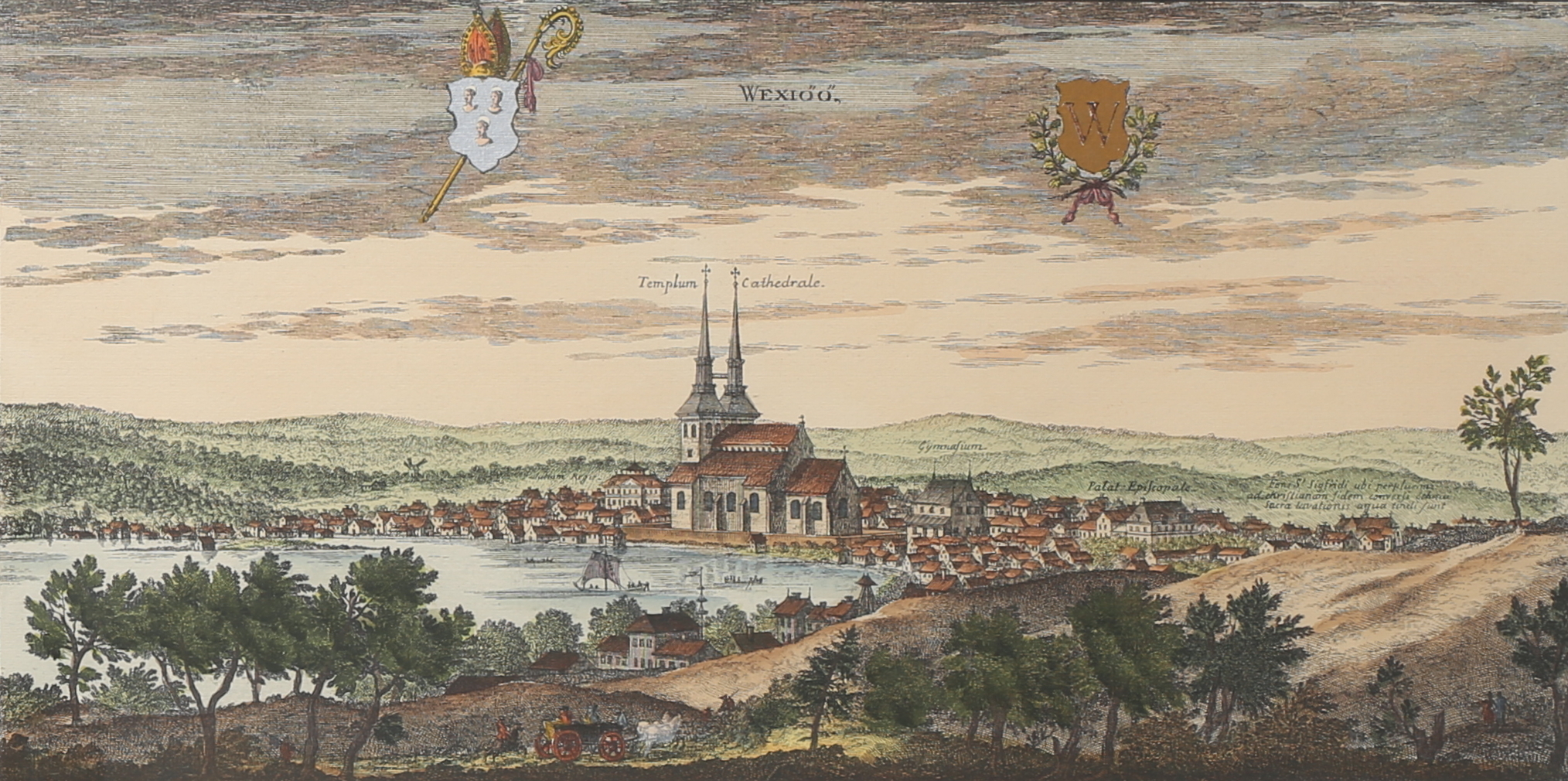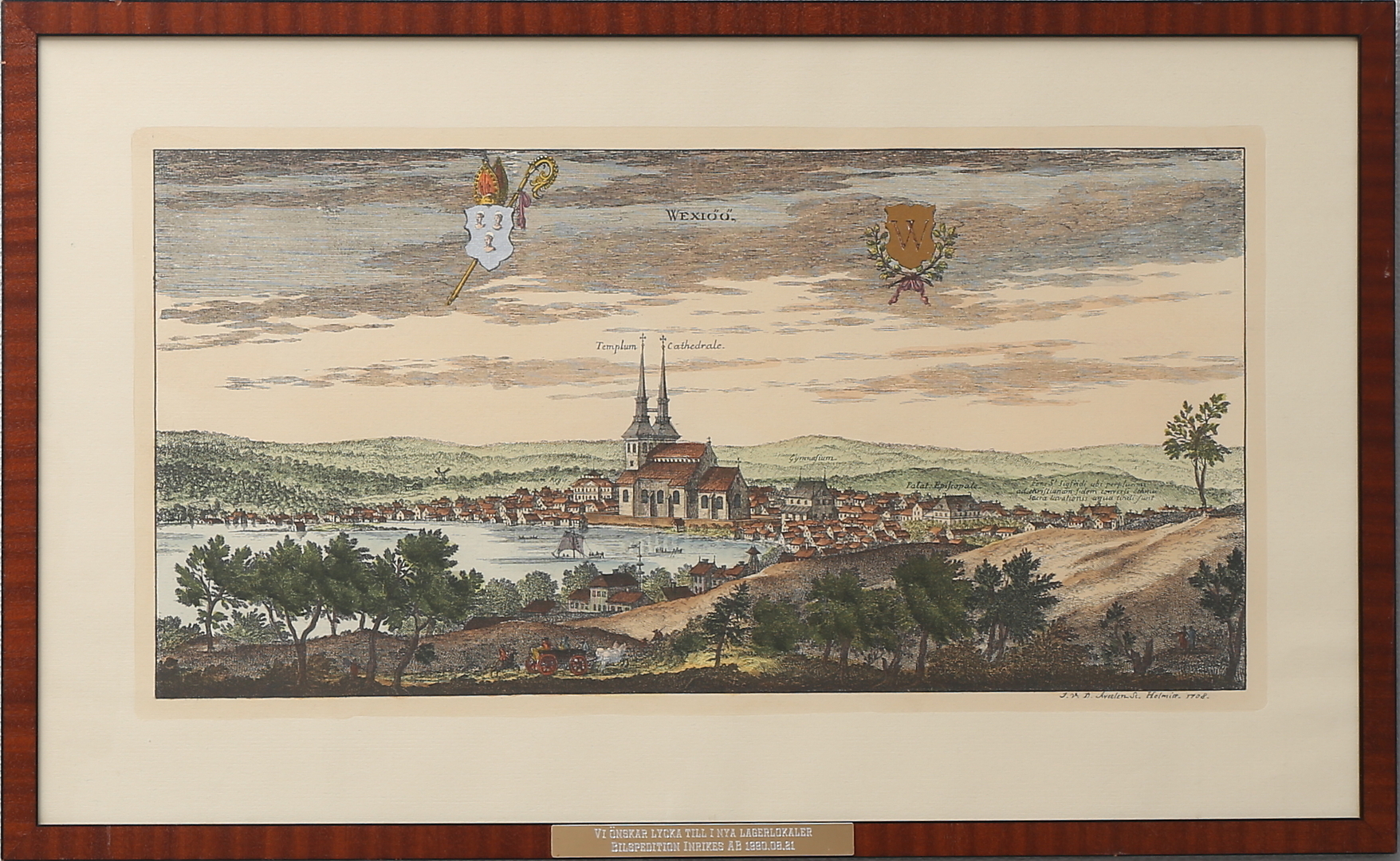 337611. GRAFISK BLAD, udsigt over Växjö 1708.