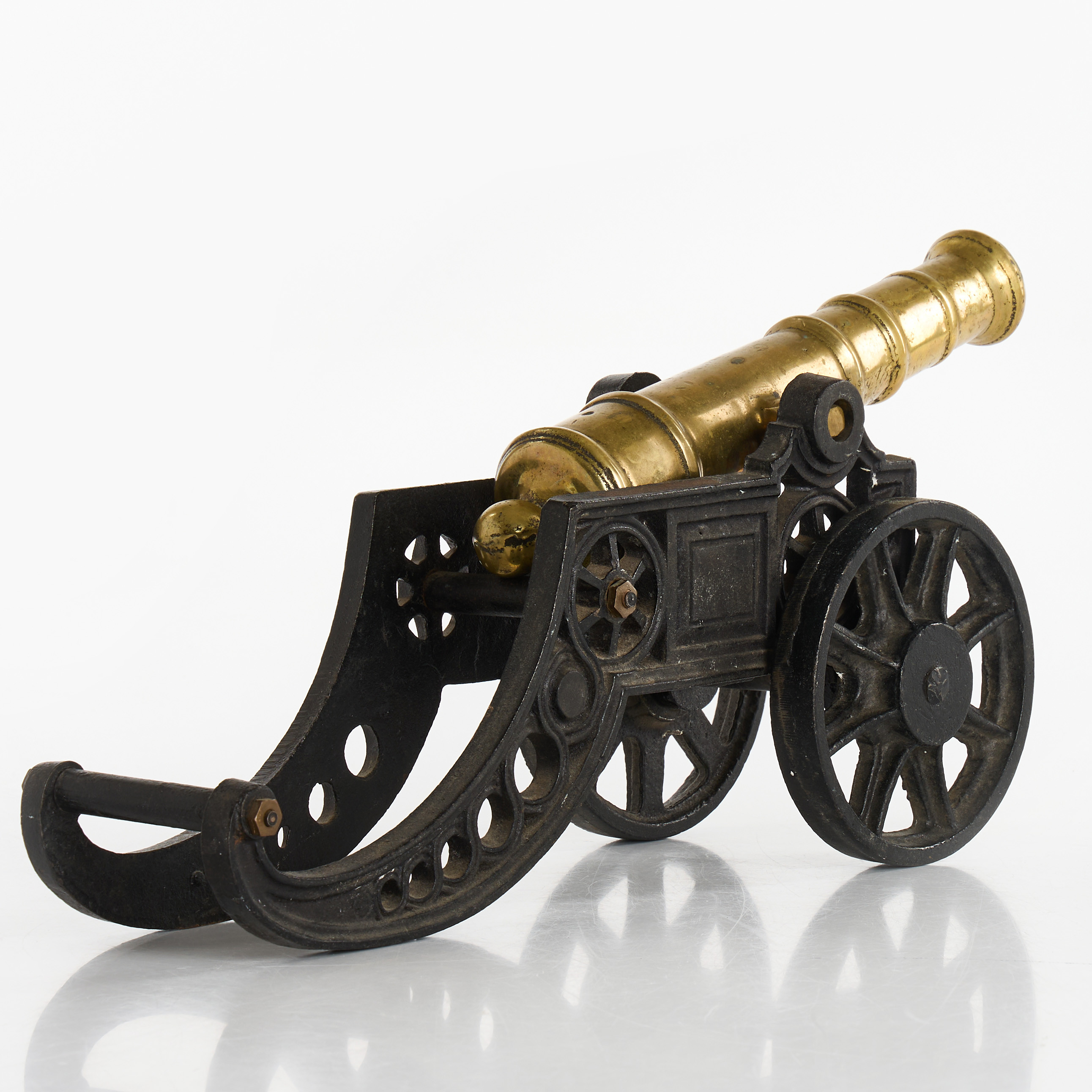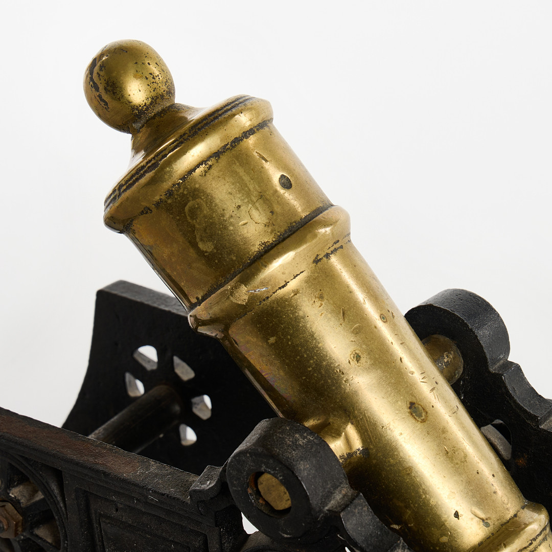 3376322. BORDKANON, Messing på jernplade.