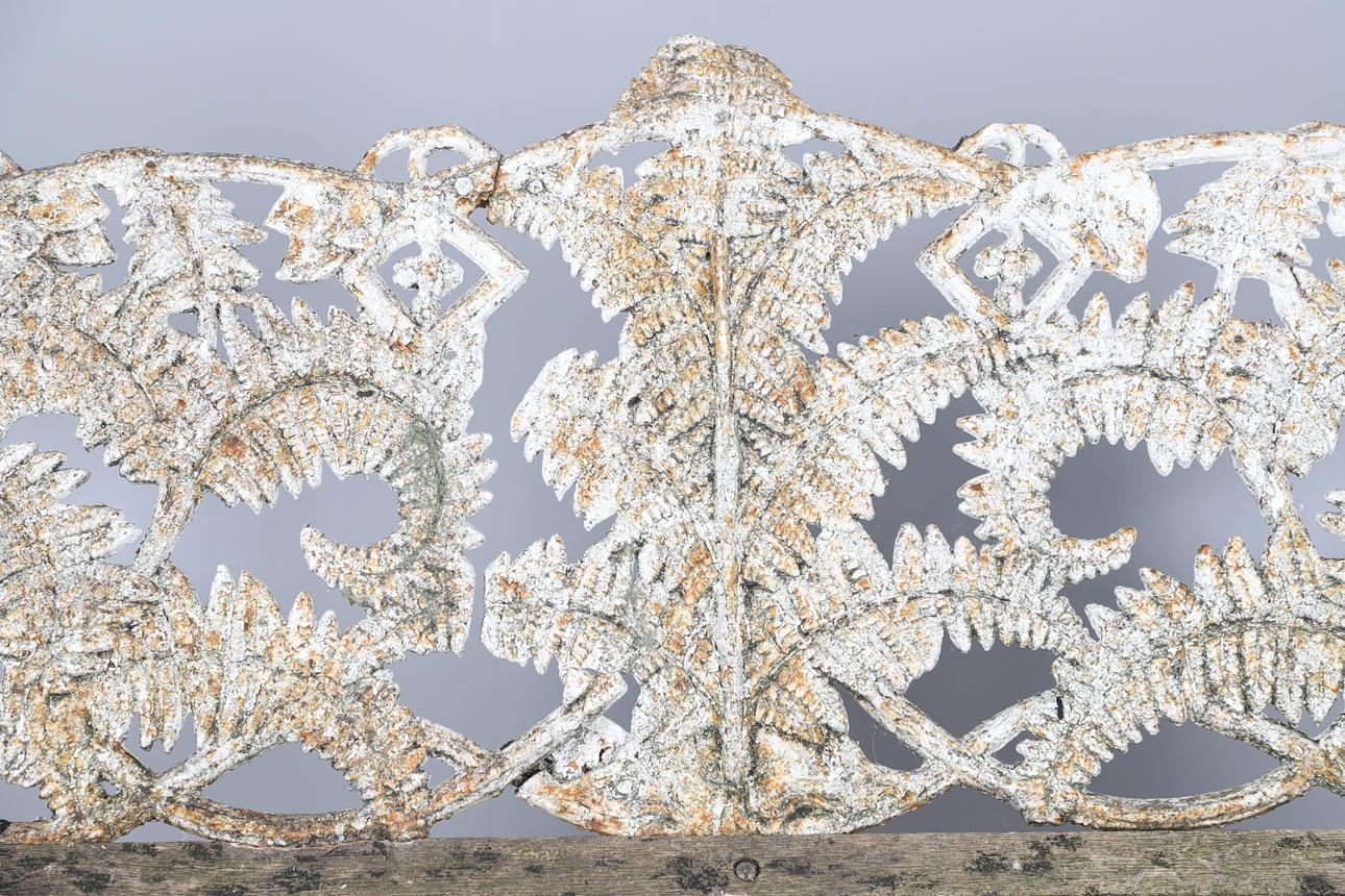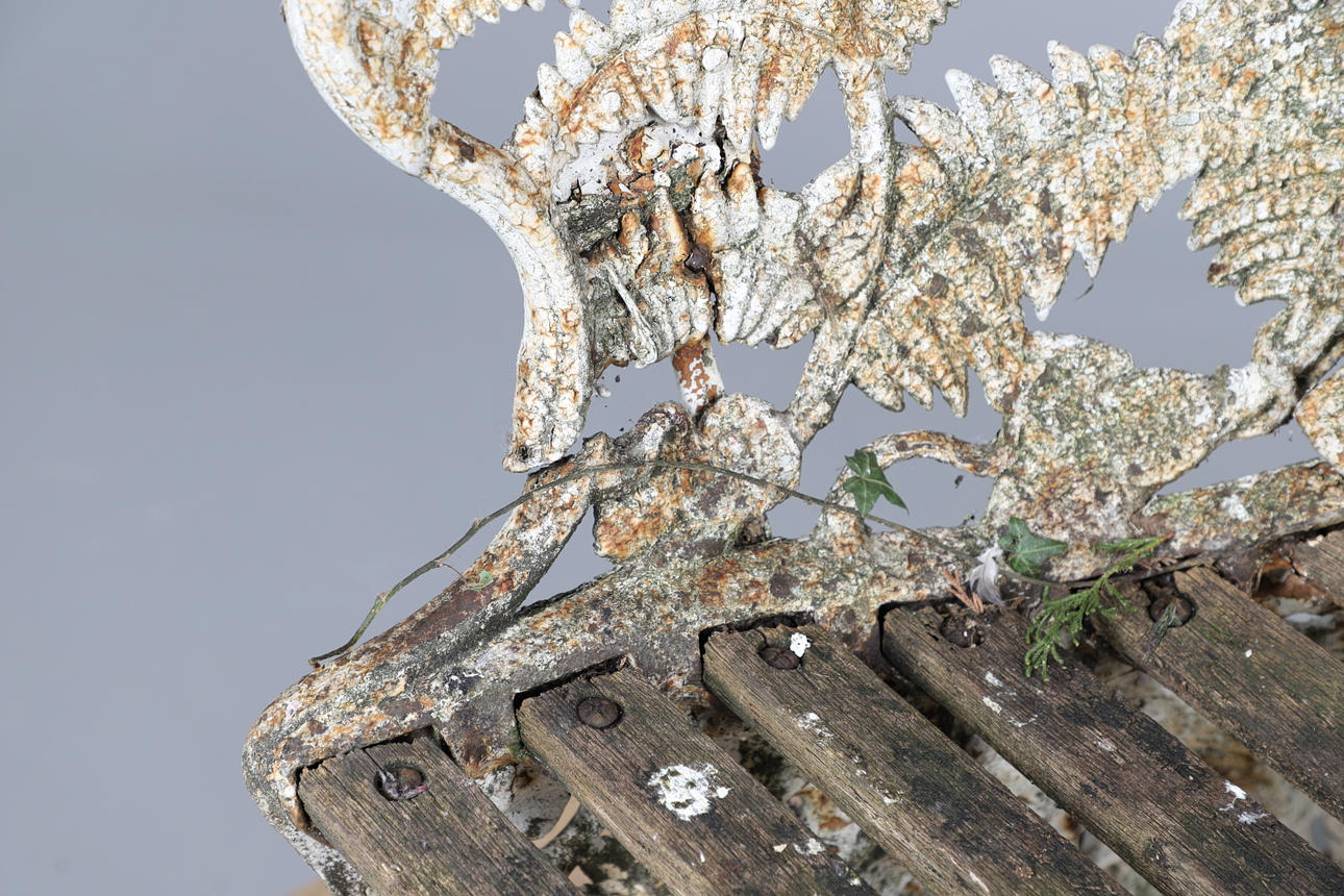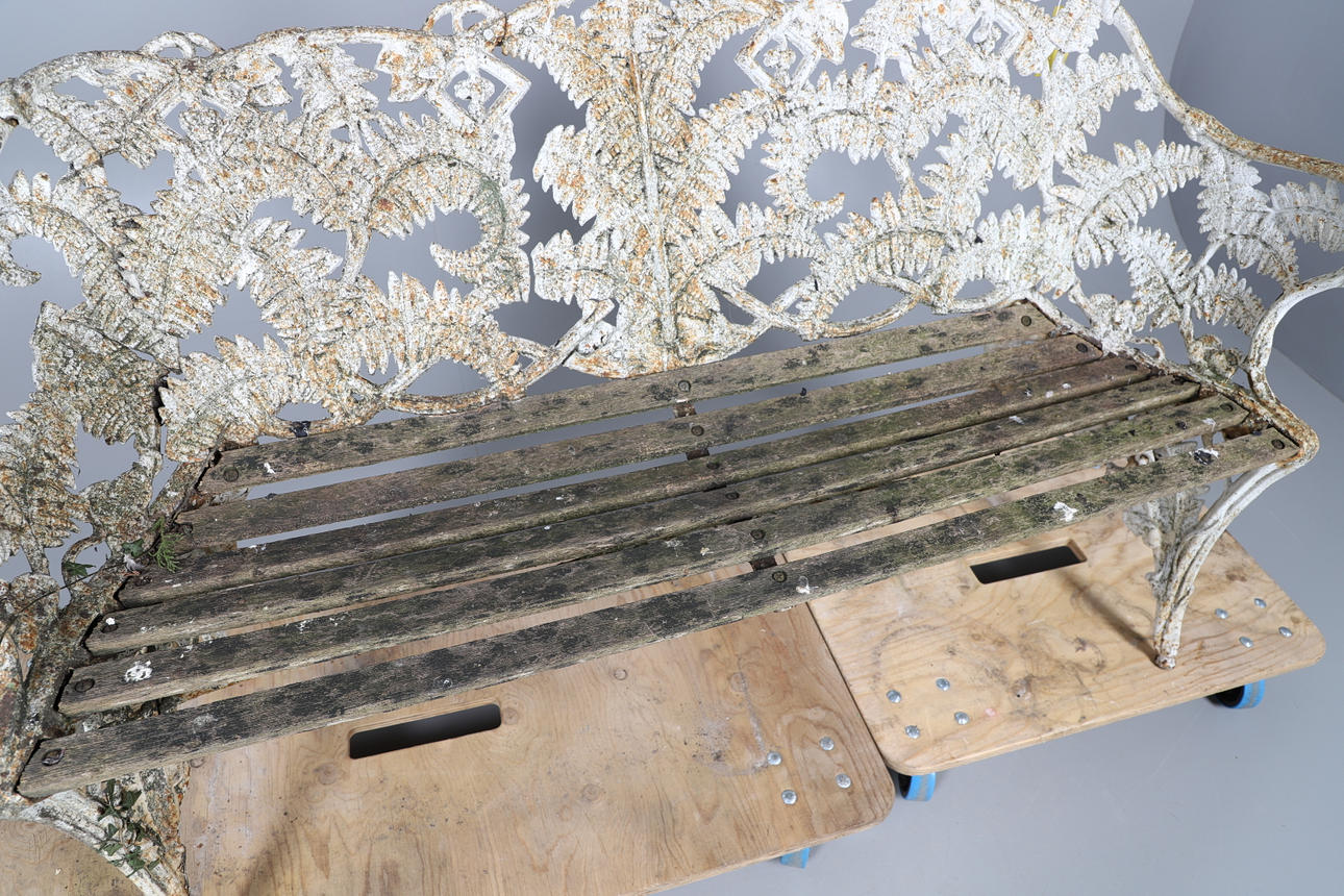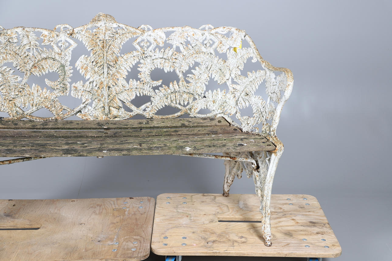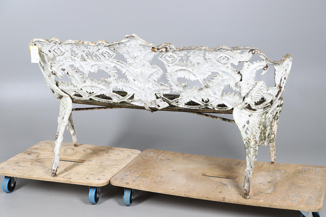 EN HAVEBÆNKSÆDE I STØBEJERNSBREGNE OG BROMBÆRMØNSTER.