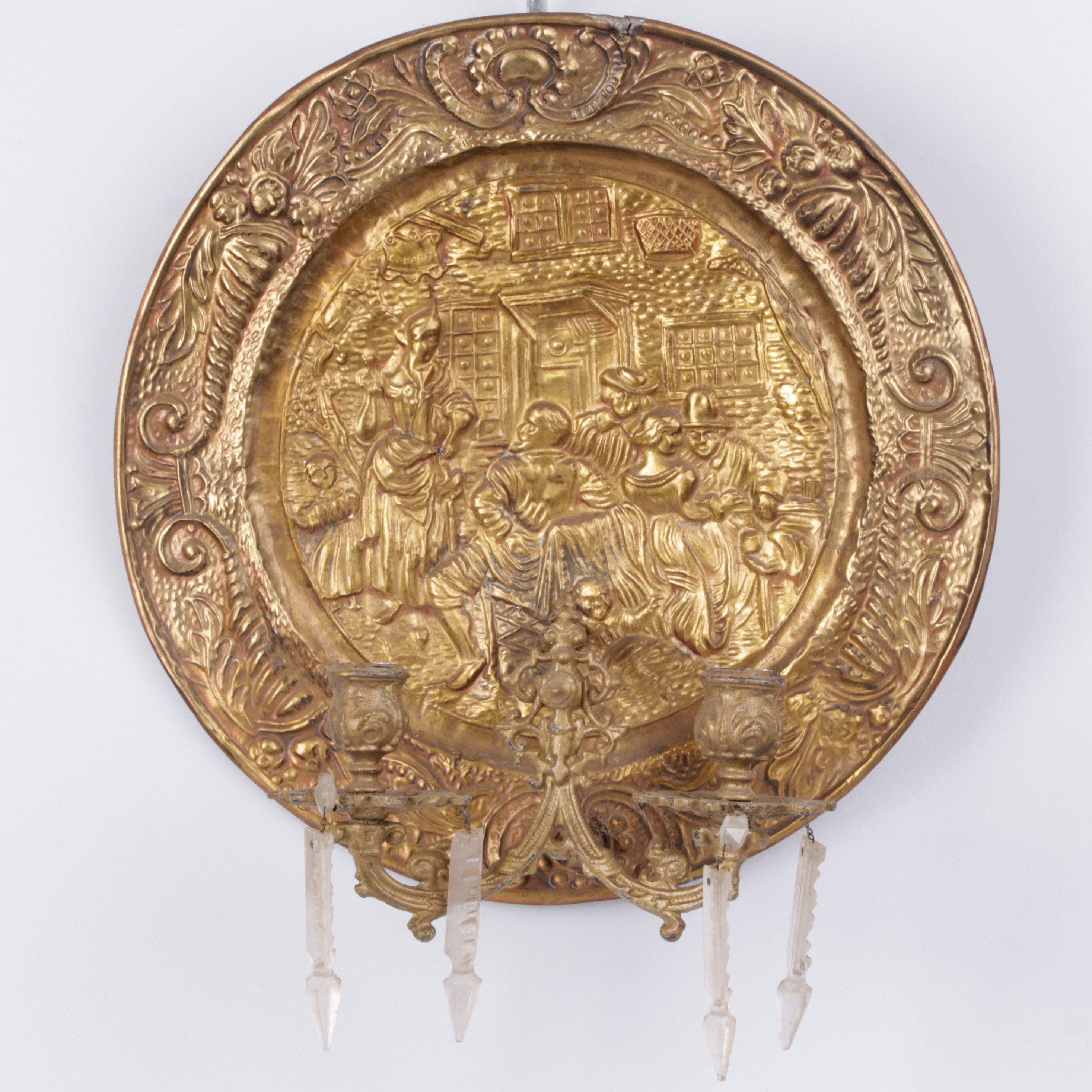 337755. LYTPLADE, metalplade, messing og prismer, 1900-tallet.