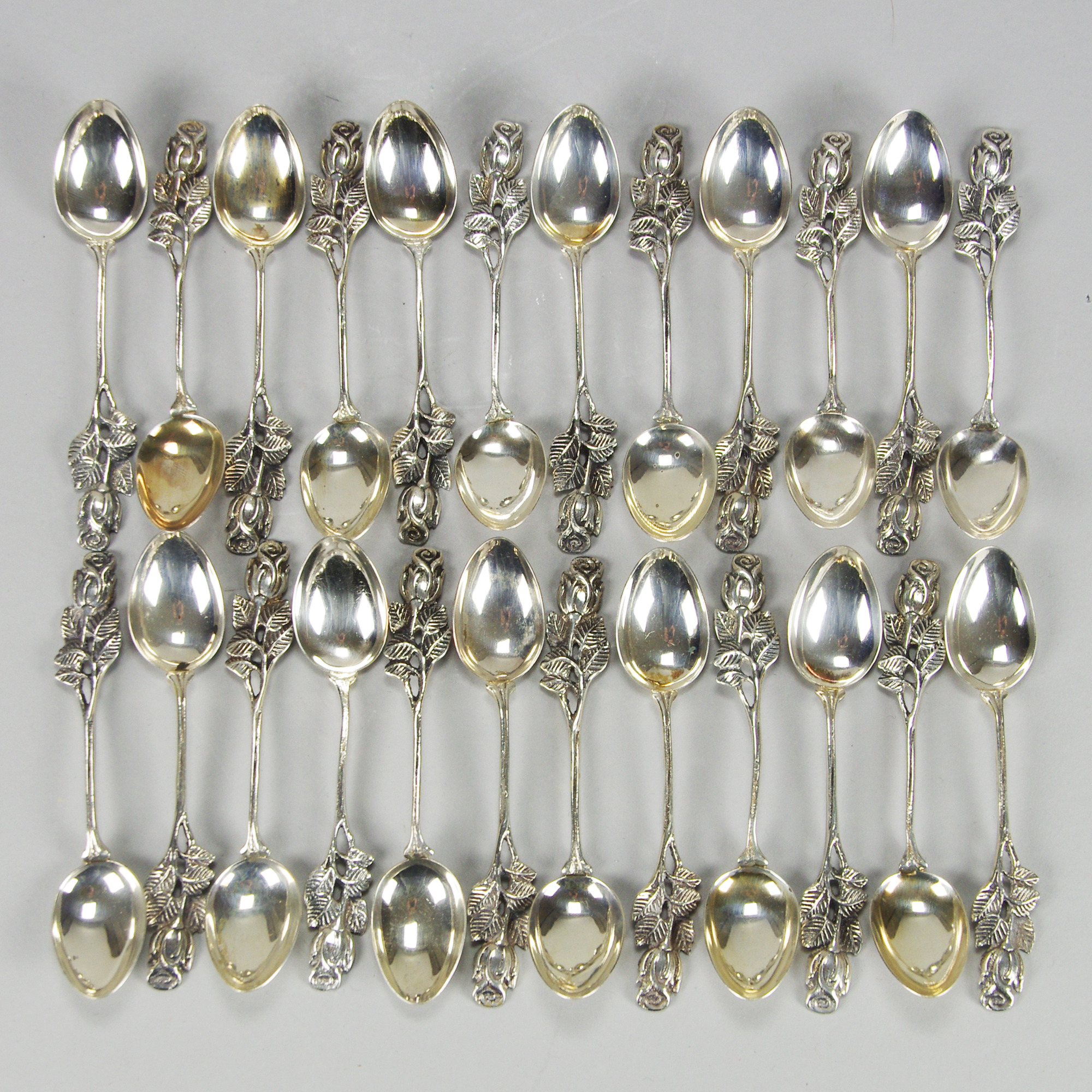 338099. Kaffeskeer, 24 stk., "Rosen", sølv.