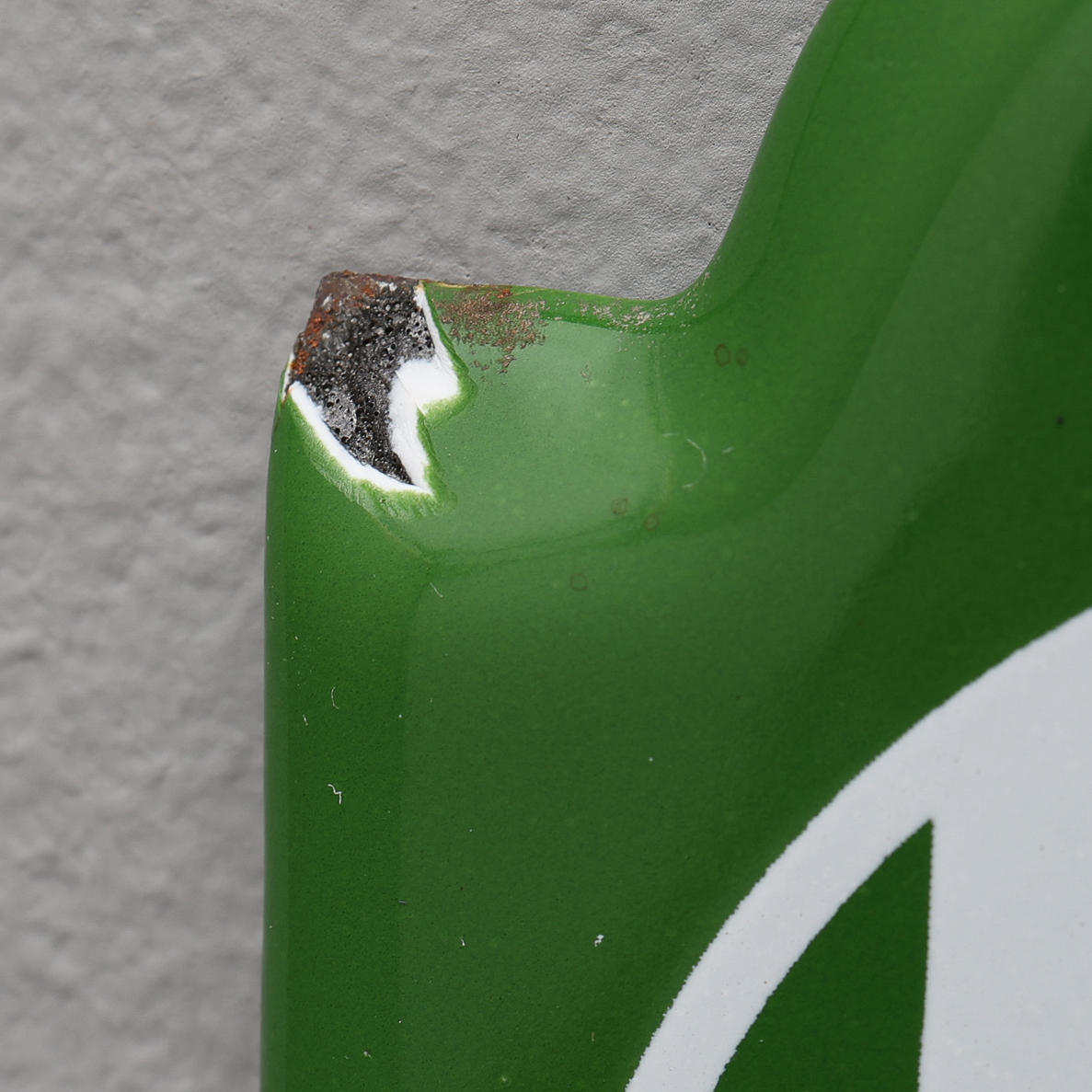 Aldersrelateret slid. Emaljeskader i øverste venstre hjørne.
