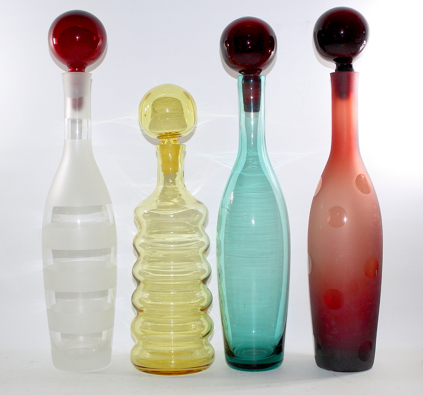 338485. KARAFLER, glas, 4 stk, Älmhult glasfabrik.