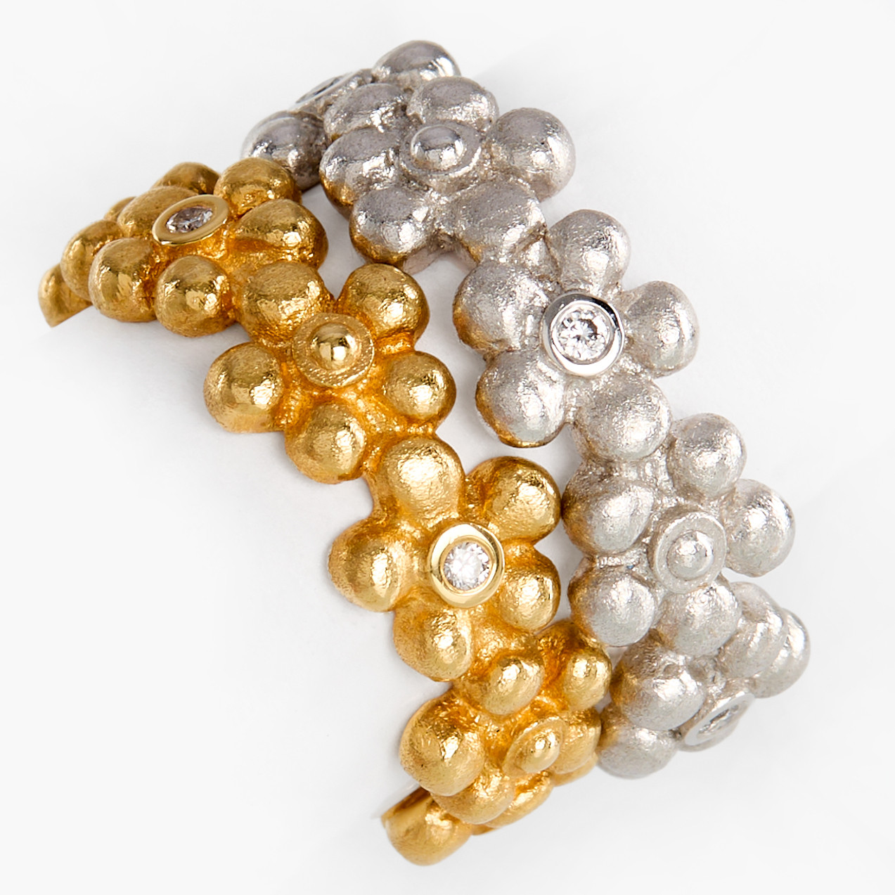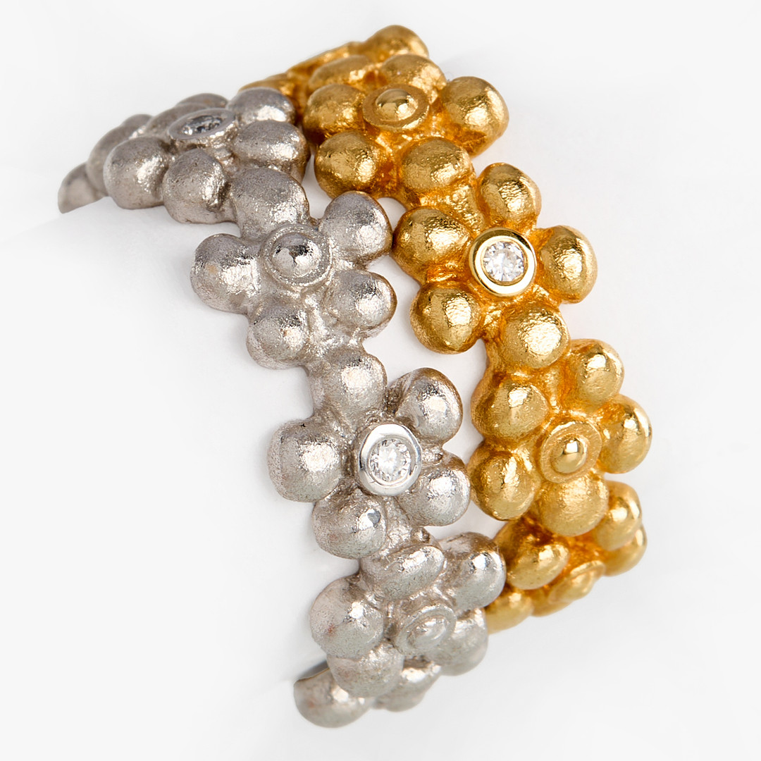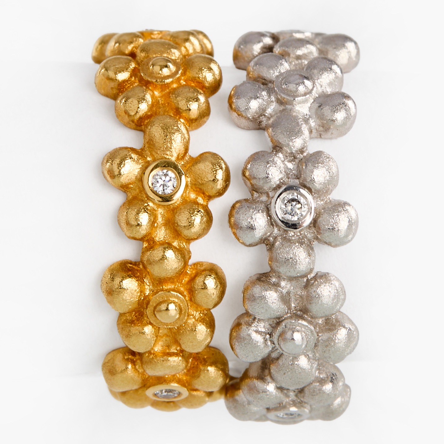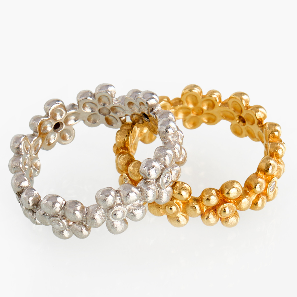 3386114. OLE LYNGGAARD, ringe, 2 stk., hyldeblomst, 18k.