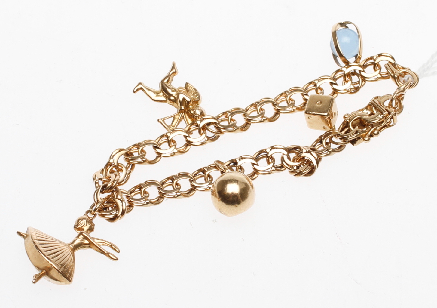 33898. ARMBÅND med BERLOCKER, 18 karat guld, vægt ca. 18,5 gram.