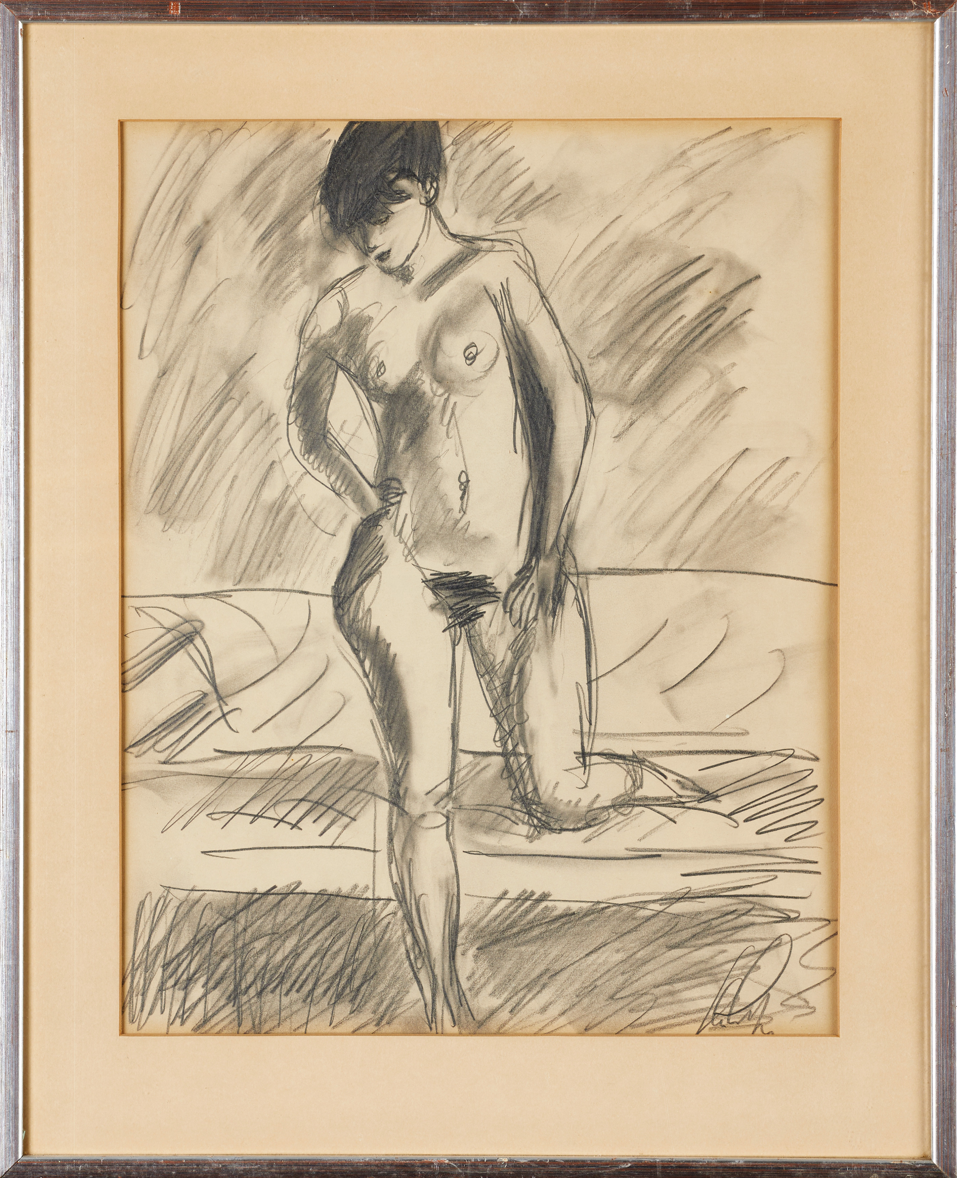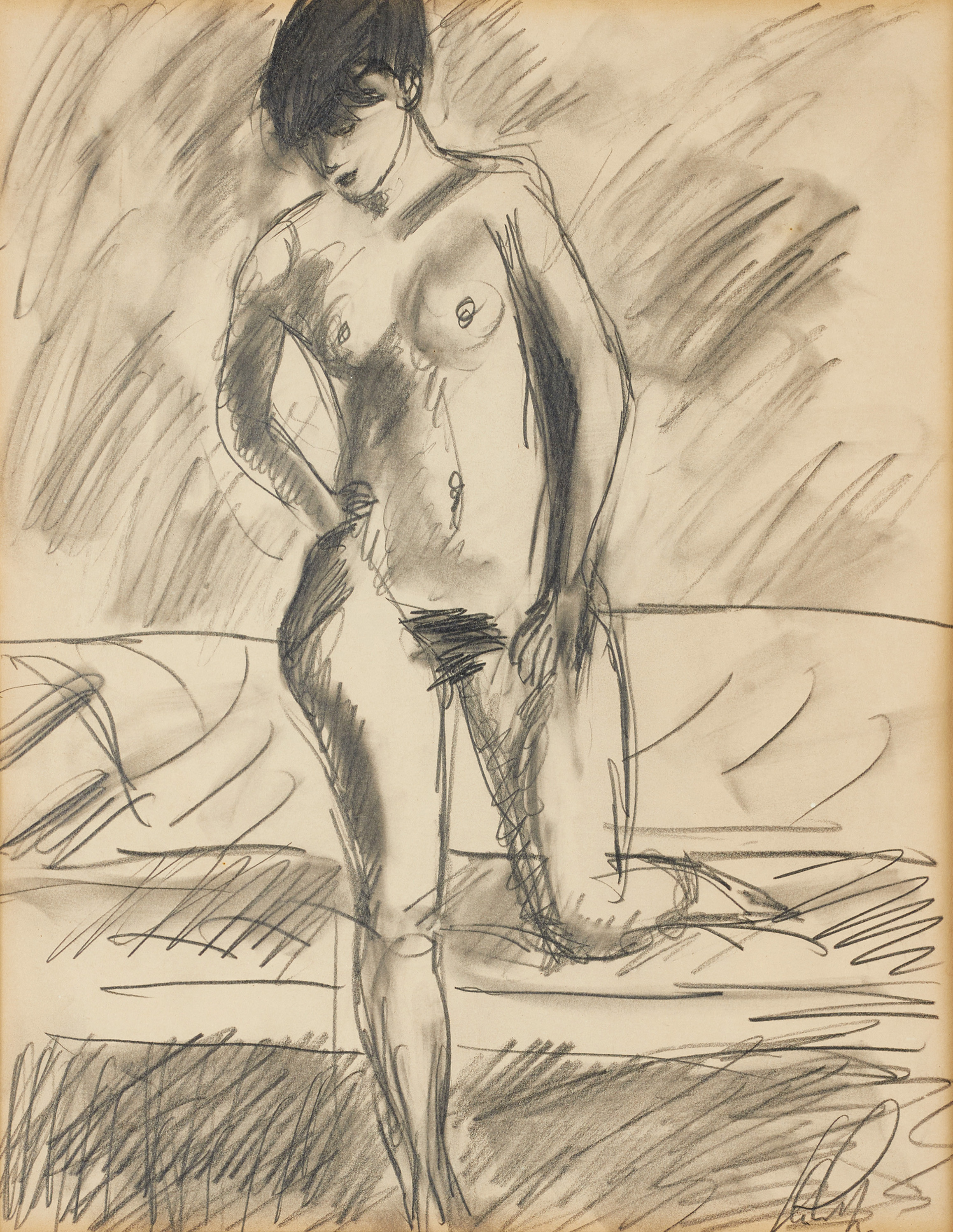 3391669. OIDENTIFIERAD KONSTNÄR. Nøgen model, tegning, signeret.