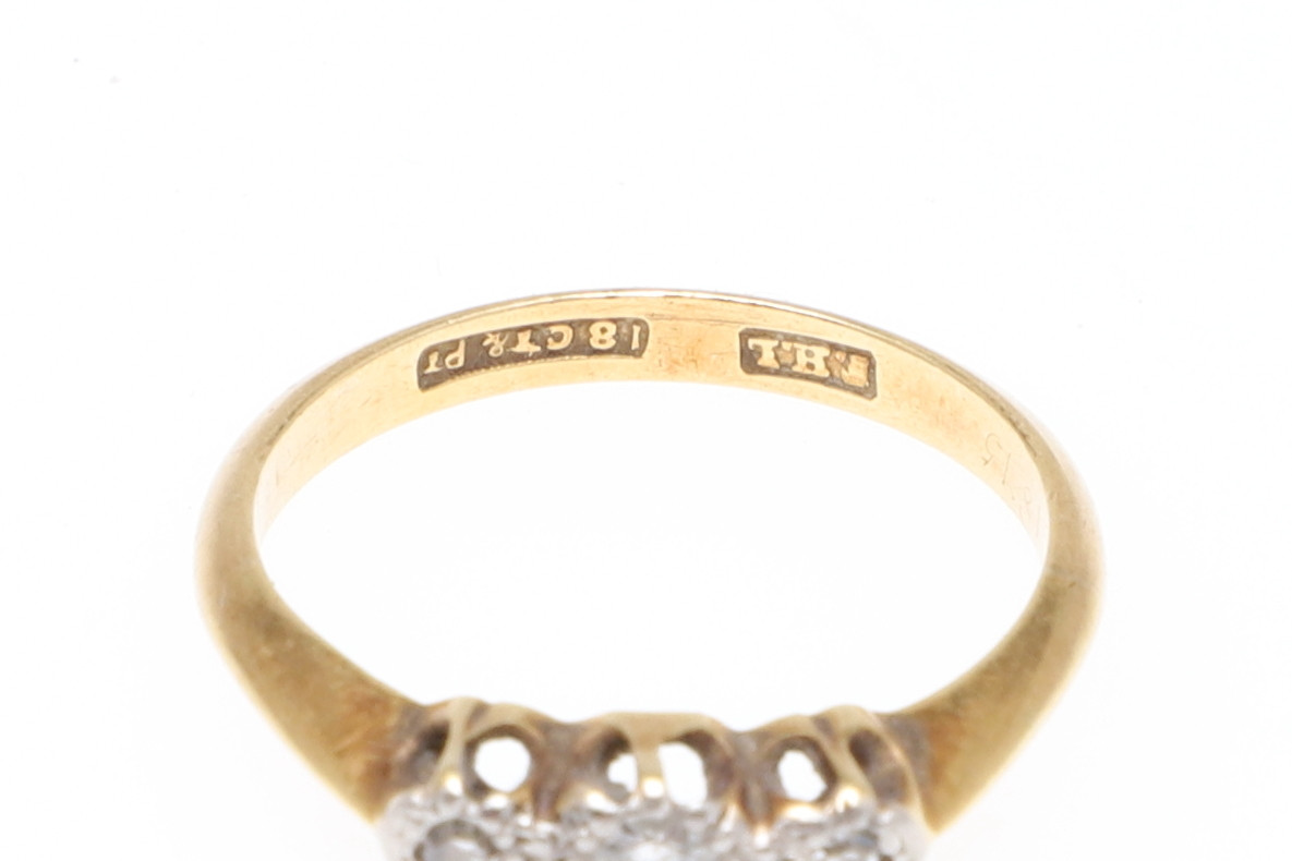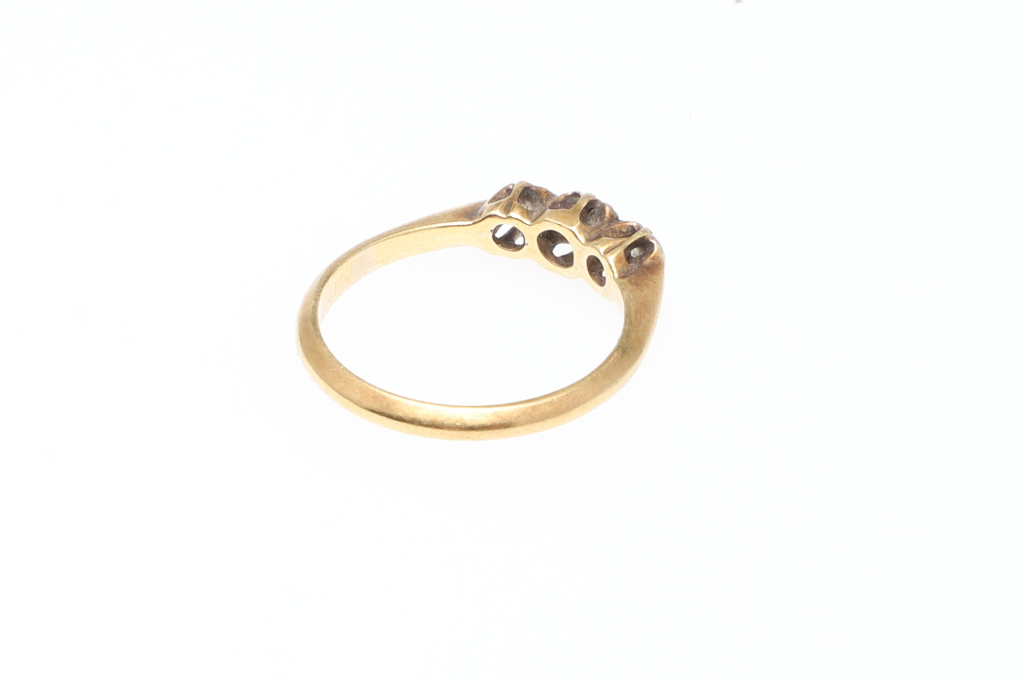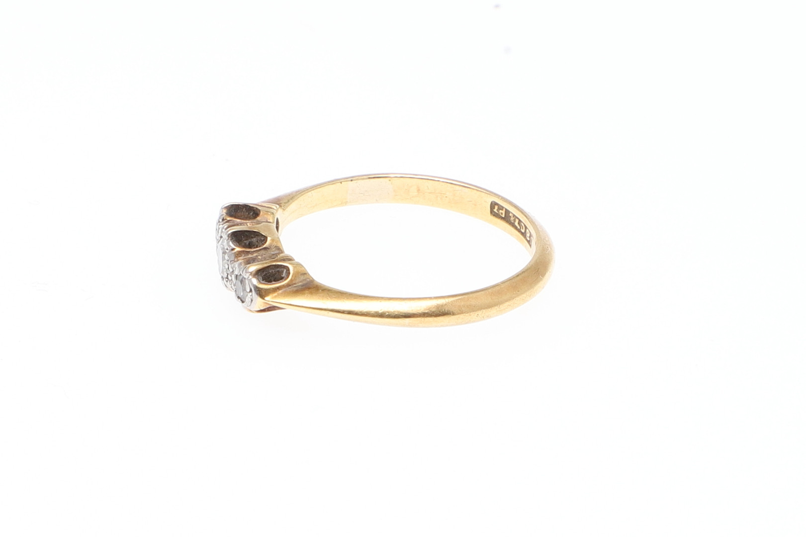 3394607. EN RING I 18 KARAT GULD OG DIAMANT TRE STEN.
