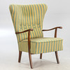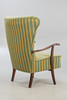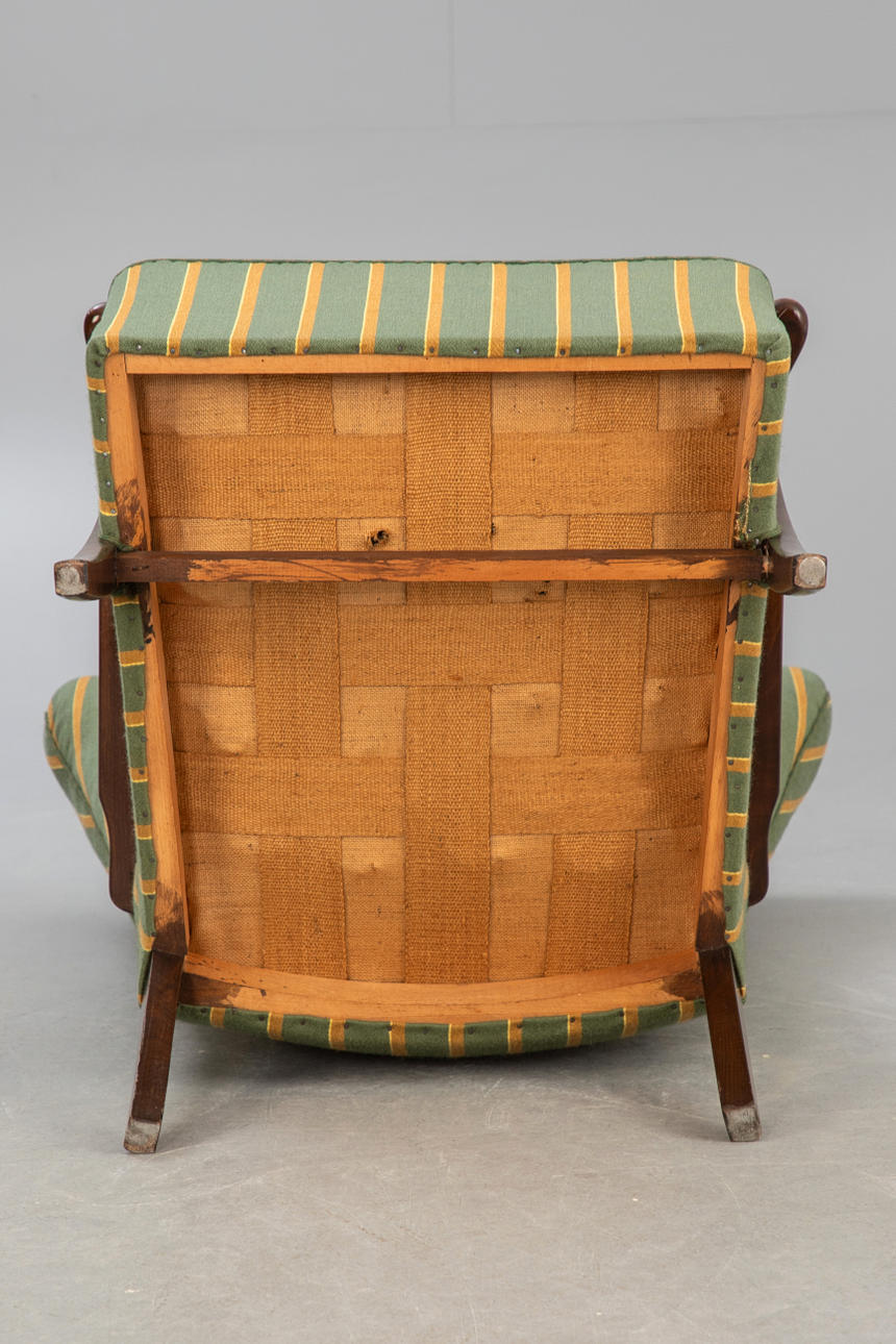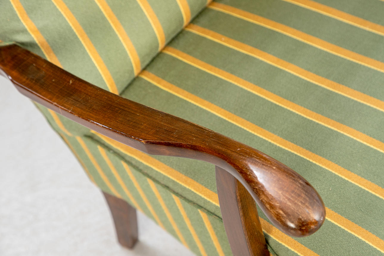 Mørkfarvet bøg. Gulgrønt stribet stofbetræk.