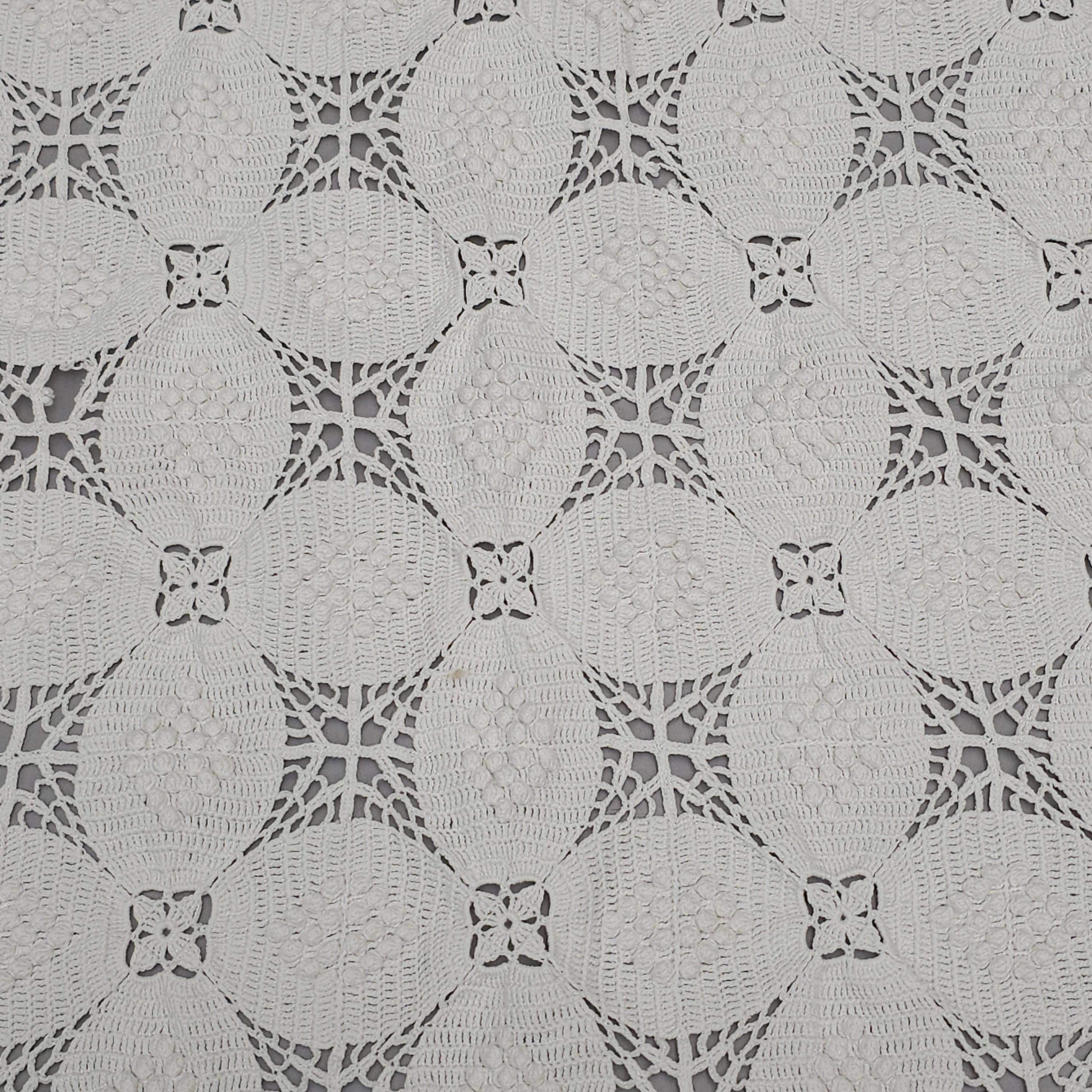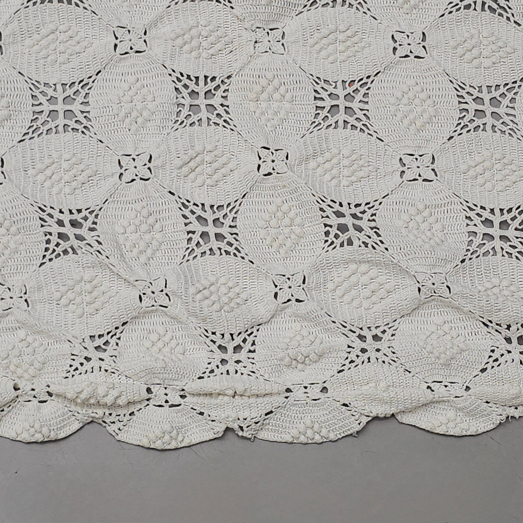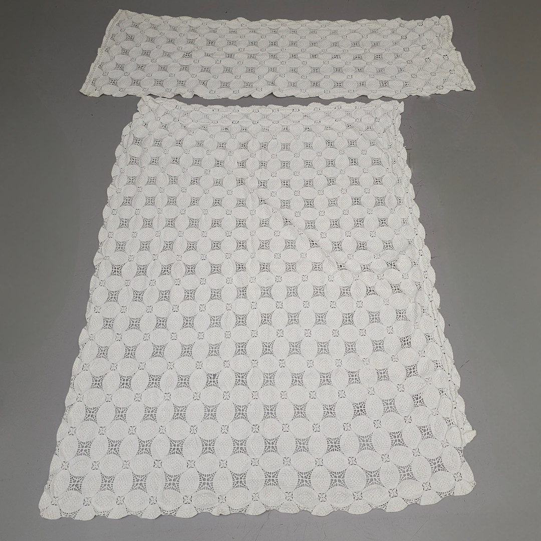 3395367. HÆKLET SENGETÆPPE MED PUDEBETRÆK. HVID FARVE.