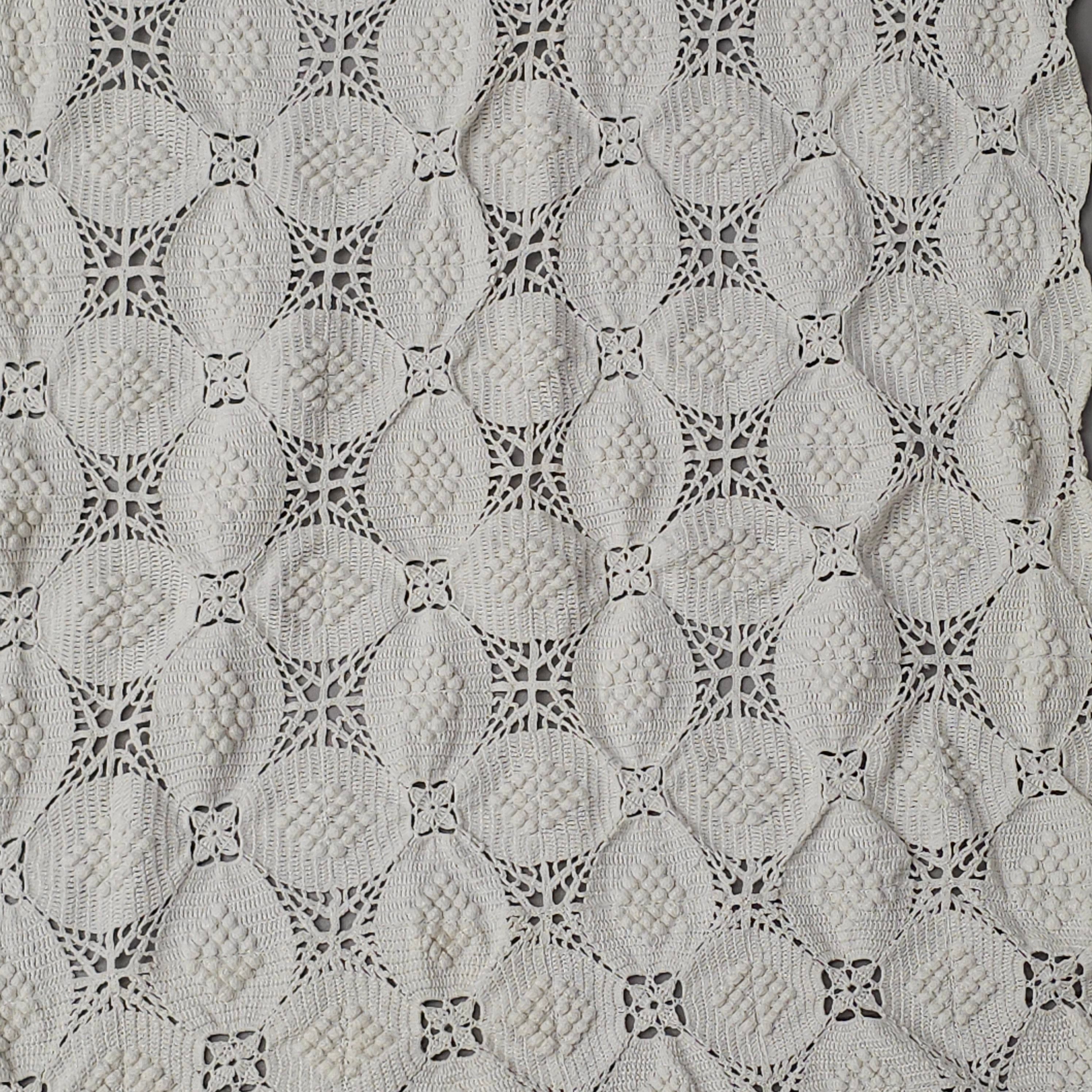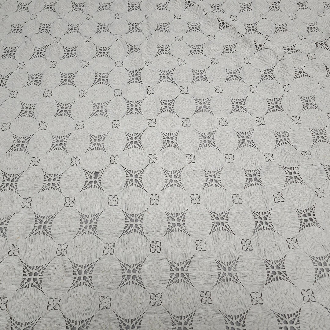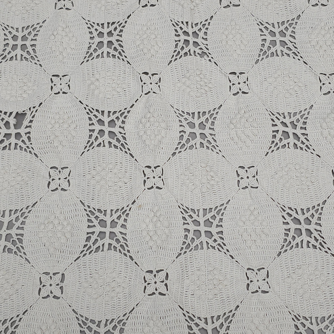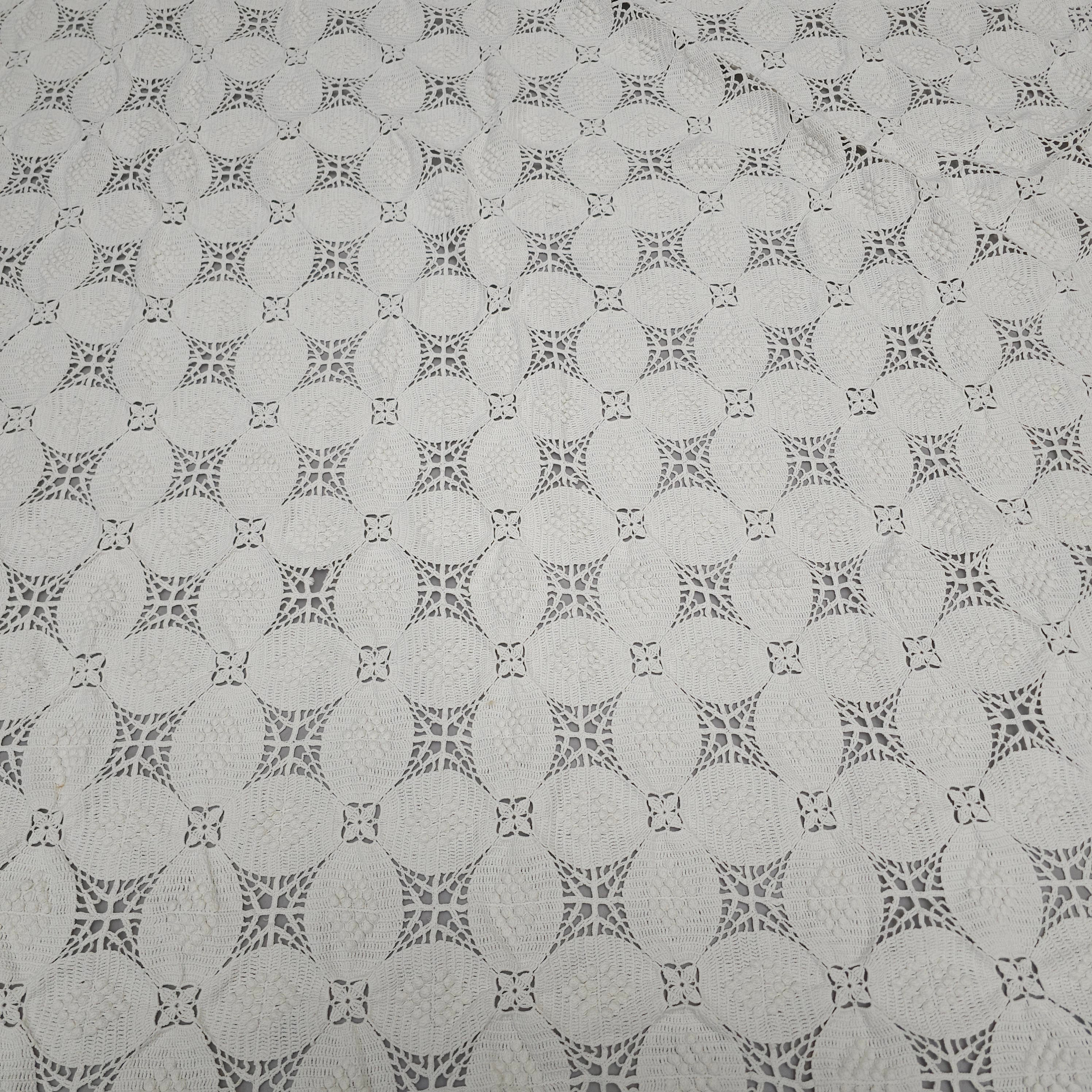 3395367. HÆKLET SENGETÆPPE MED PUDEBETRÆK. HVID FARVE.