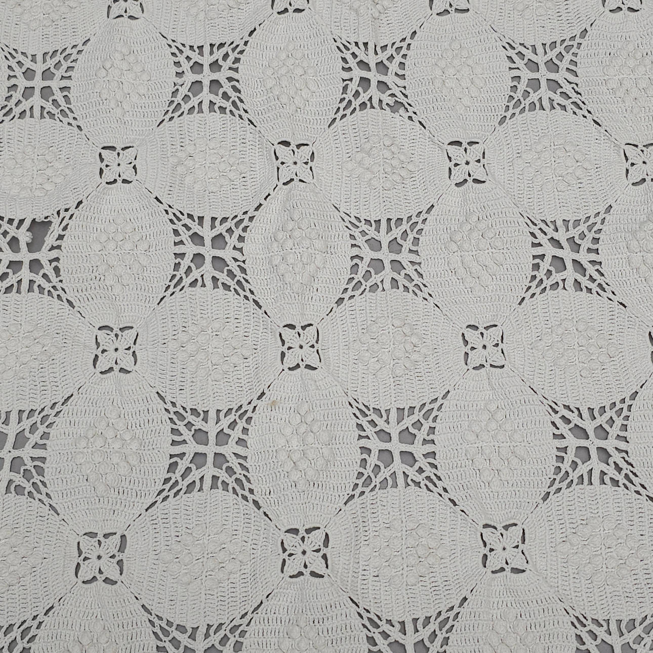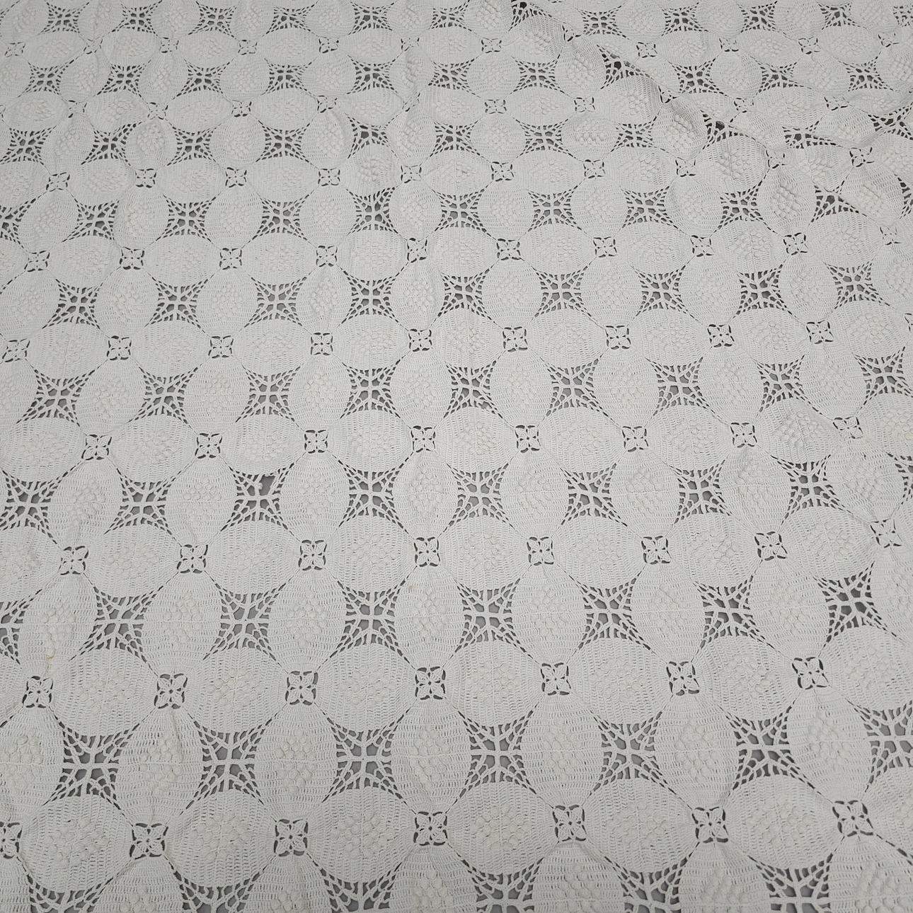 HÆKLET SENGETÆPPE MED PUDEBETRÆK. HVID FARVE.