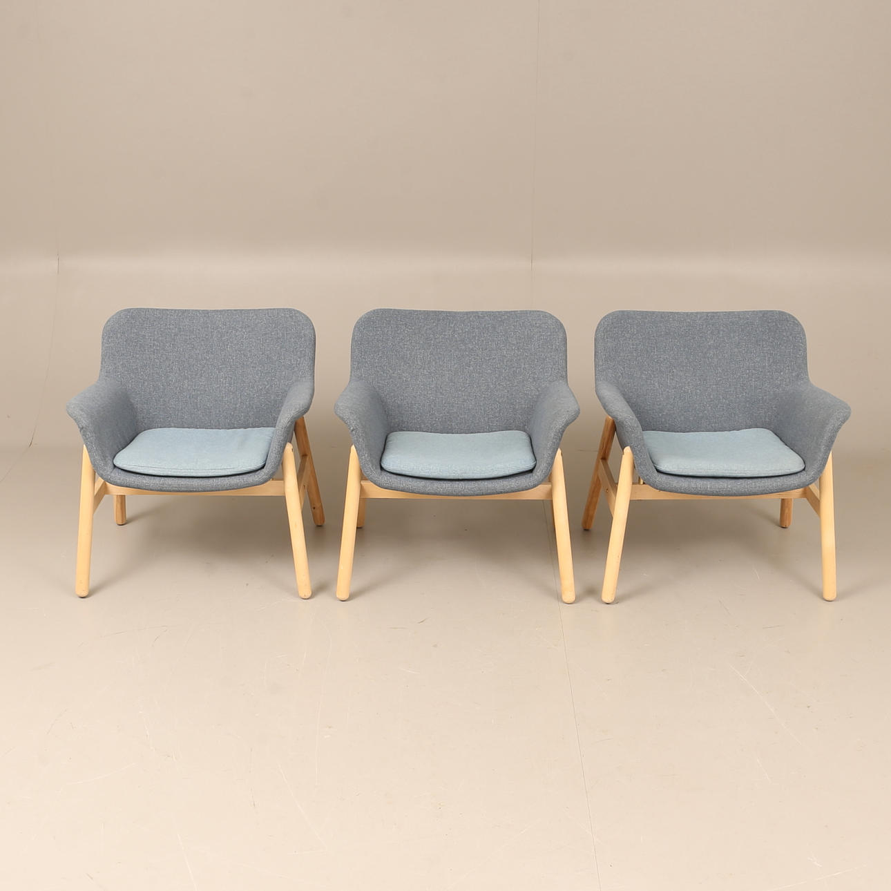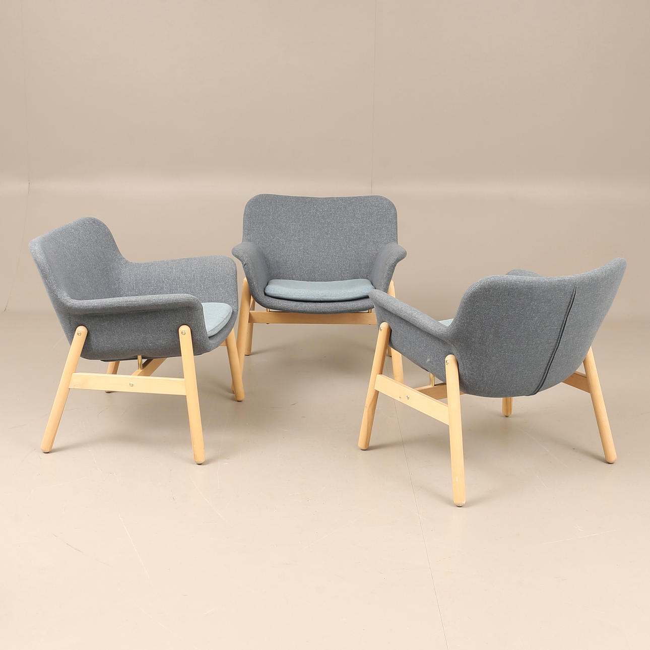 Et sæt med 3 „Vedbo“ lænestole, Ikea.