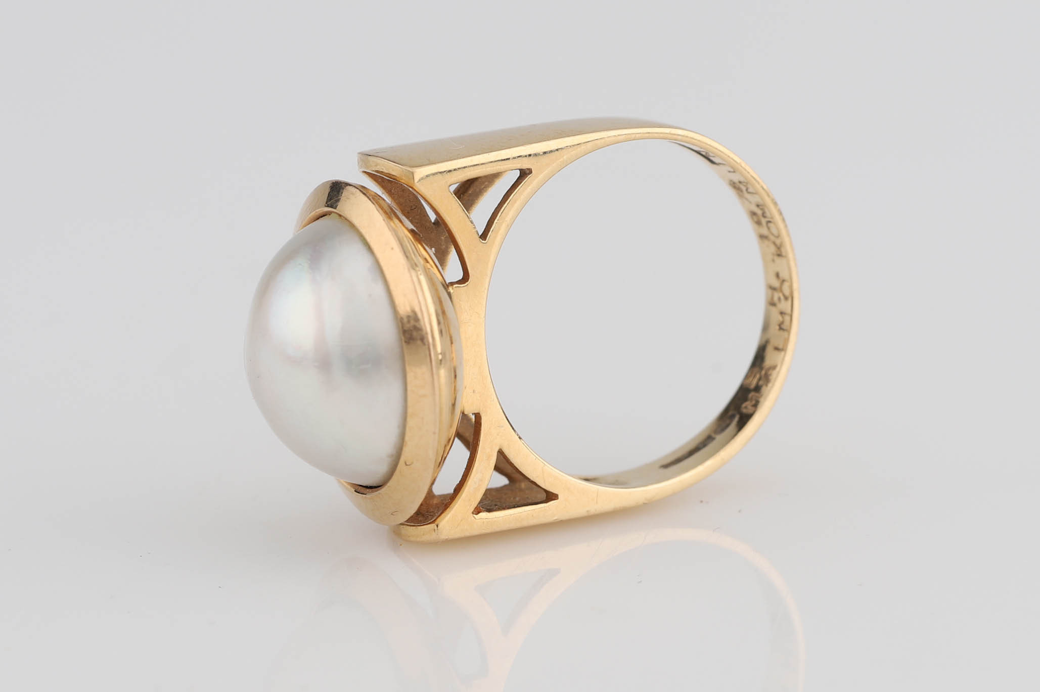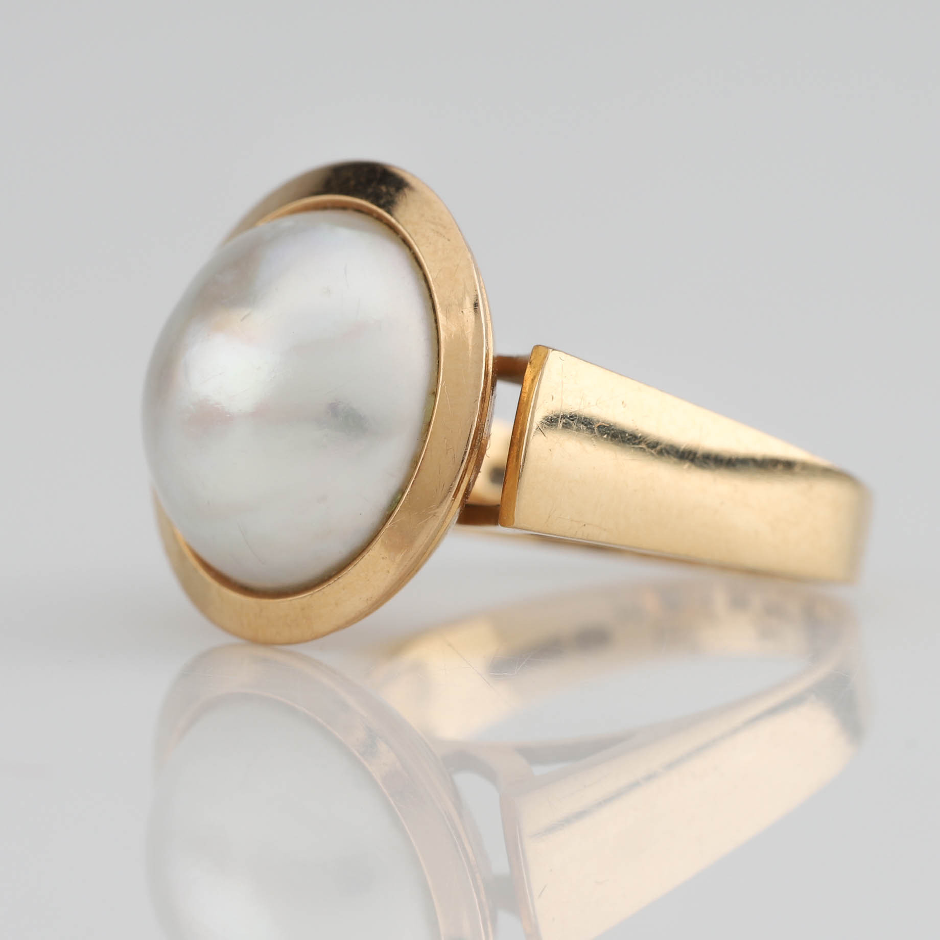 3395942. RING K18 guld, mabé perle.