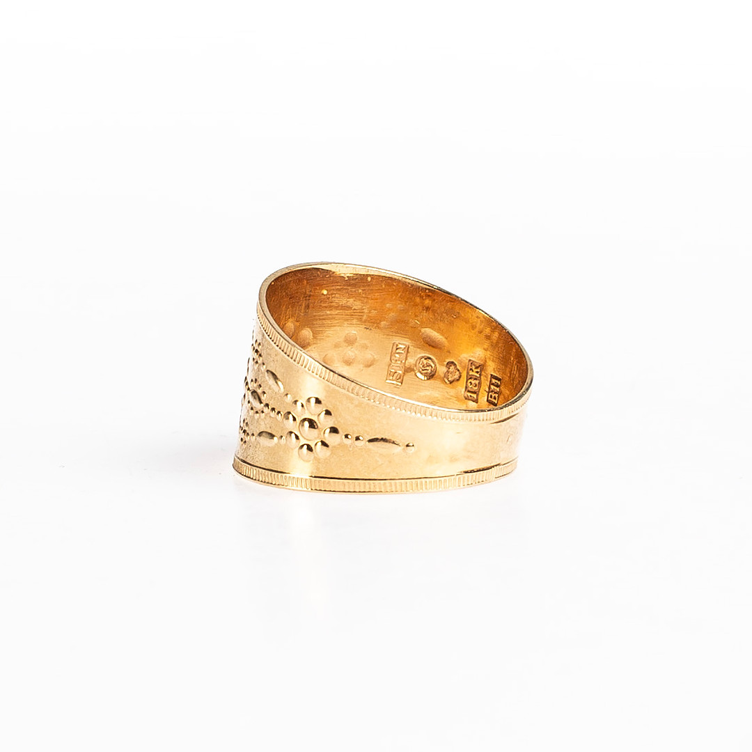 3396089. RING, 18K guld, „Gæstegravering“, ca 4.75 g.