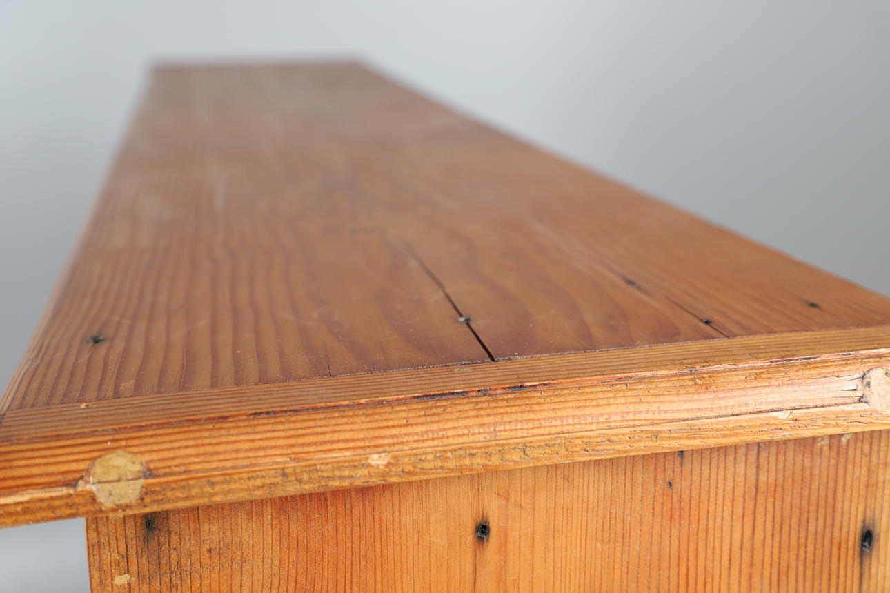 ET PAR ÅBNE REOLER I FYRREOL.
