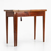 Det er en kasse. Højde ca. 73 og 75 cm henholdsvis, bord 87x42,5 cm eller foldet 87x85 cm.