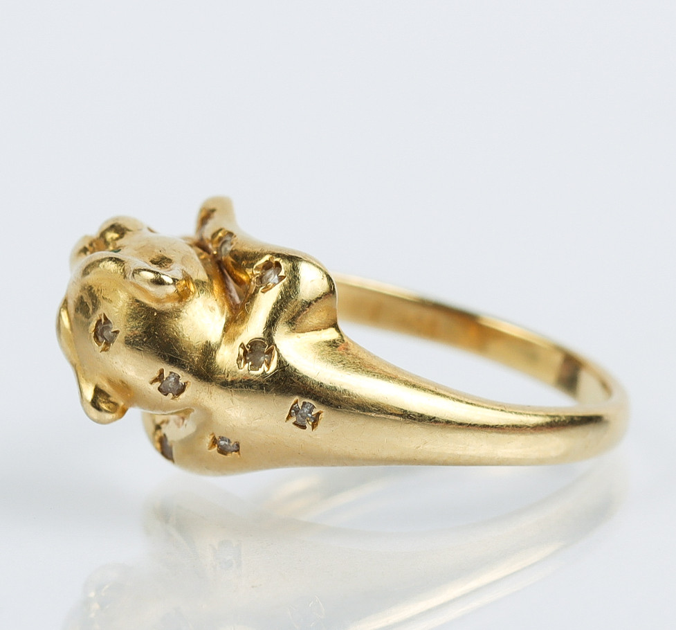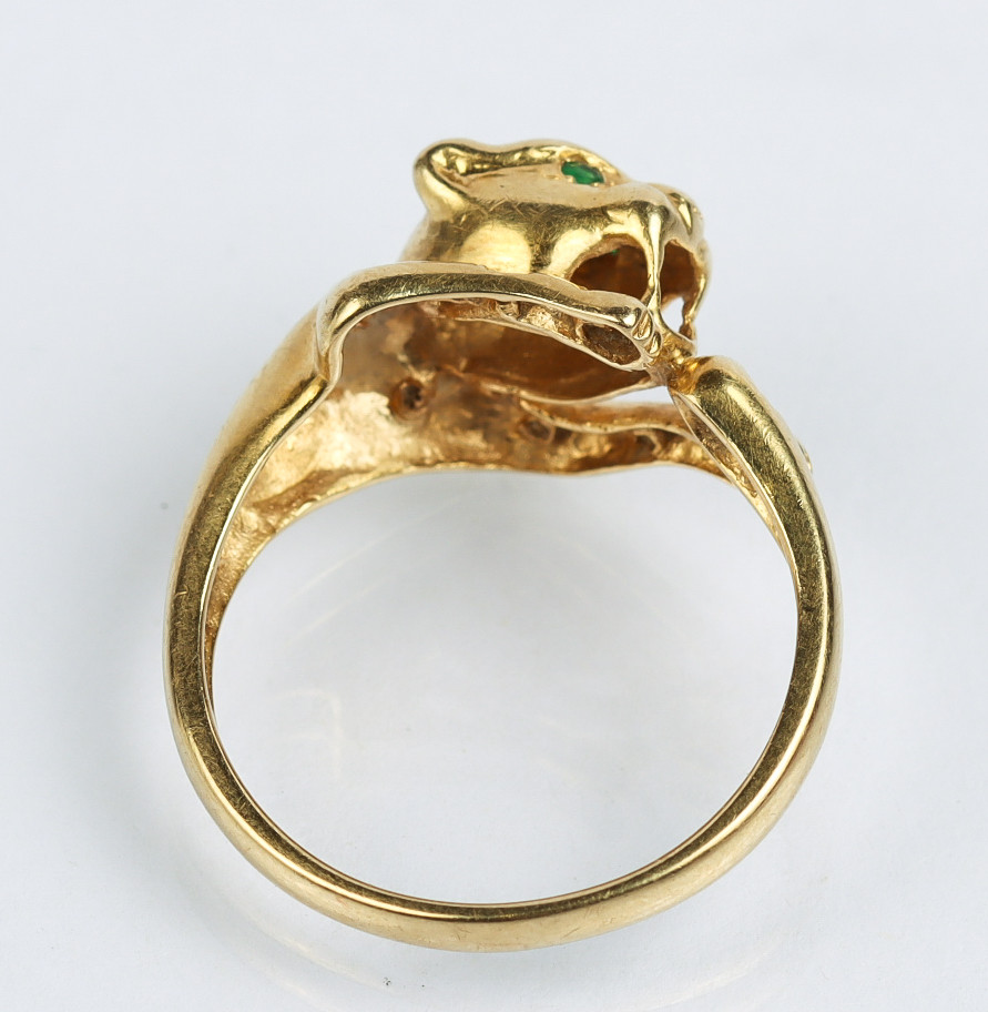 3401247. RING 18k, Panter med Smaragdøjne.