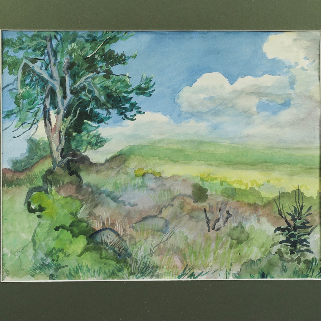 3402240. ERIC JOHANSSON. Træ i landskabsvisning, akvarel.