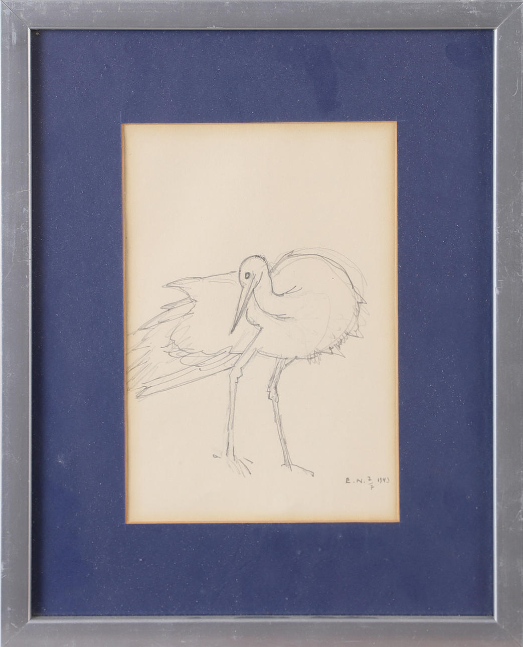 3411036. ERNST NORLIND. Stork, tegning, signeret E.N. 1943.