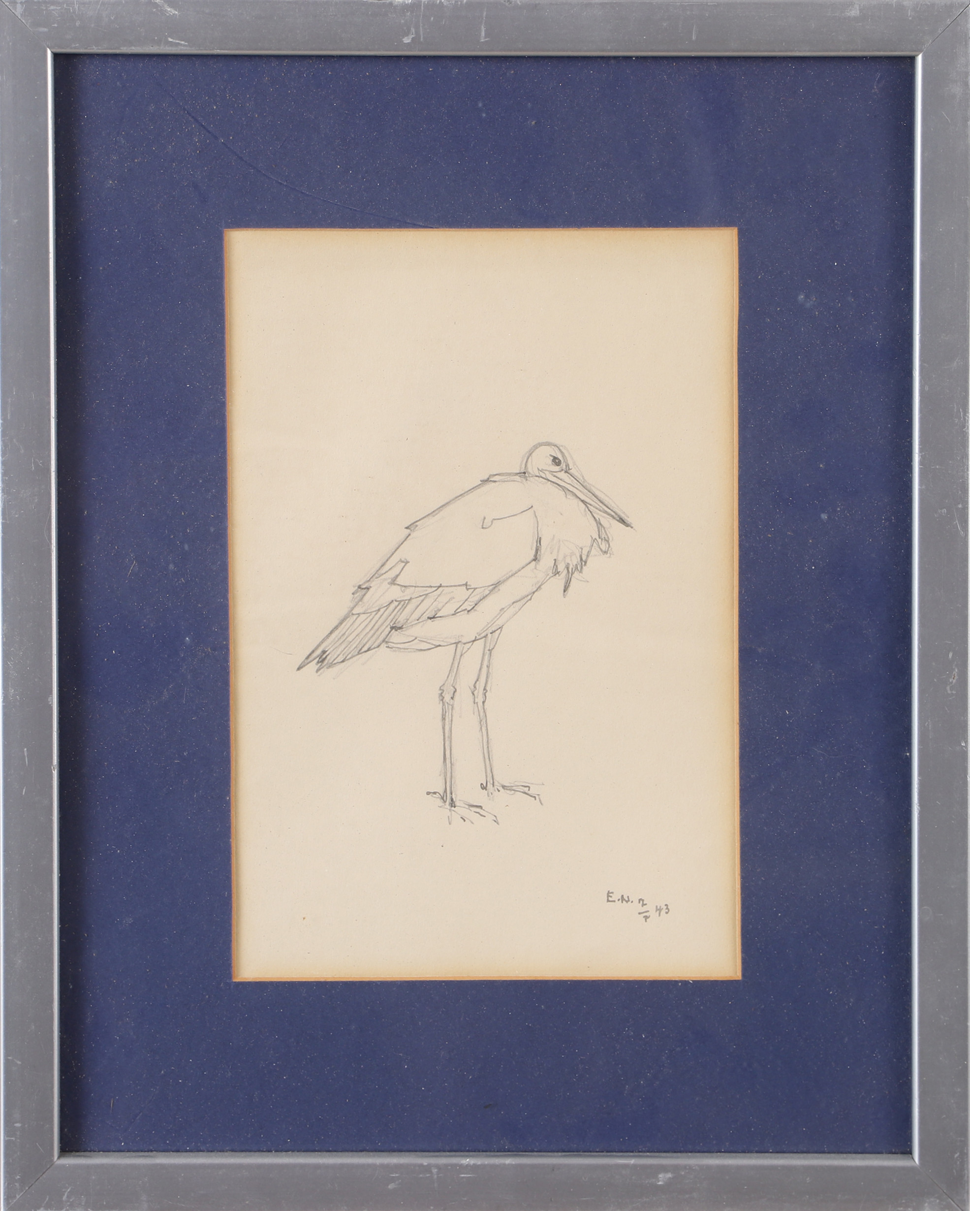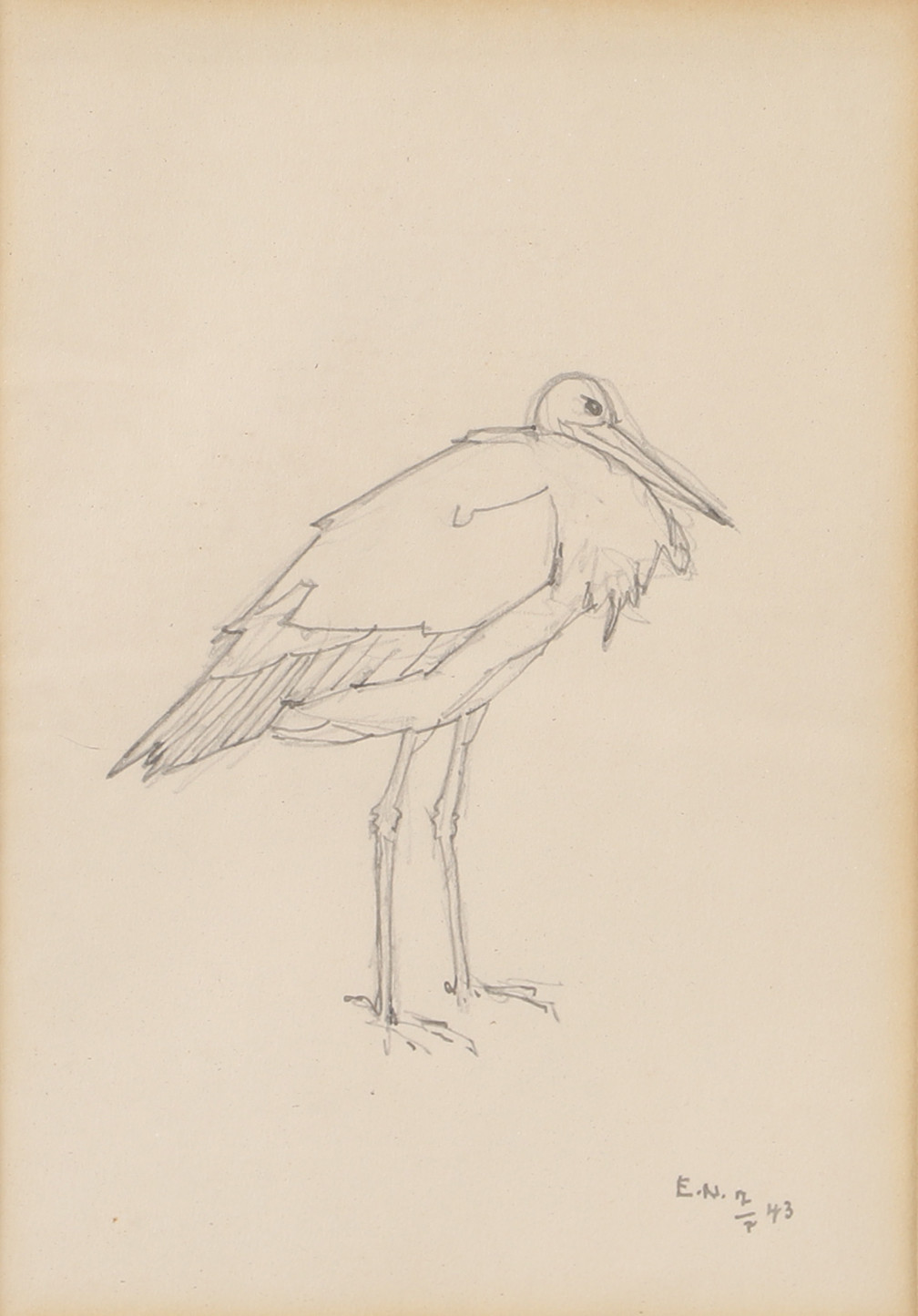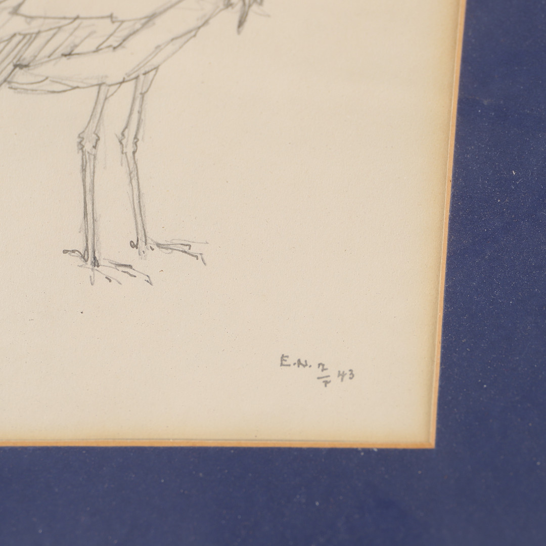 3411040. ERNST NORLIND. Stork, tegning, signeret E.N. -43.