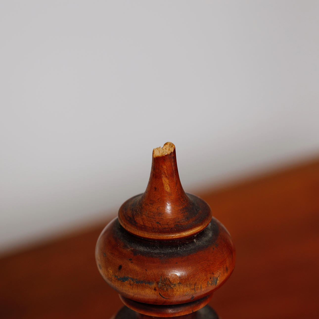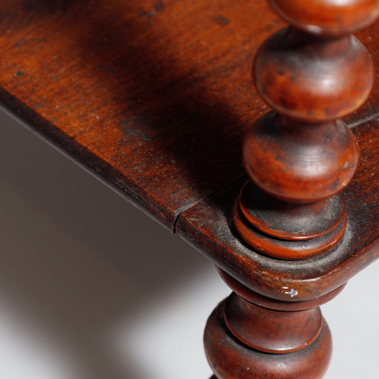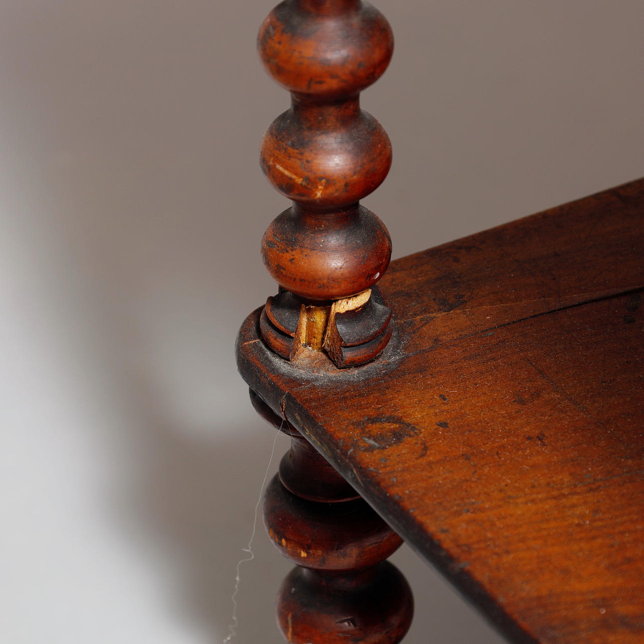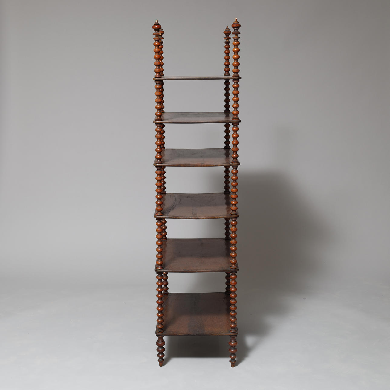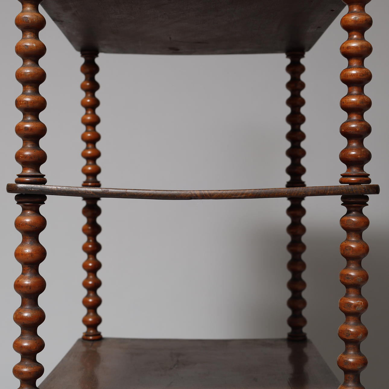 3412099. Skulpturel reol, bejdset træ, drejet stel.