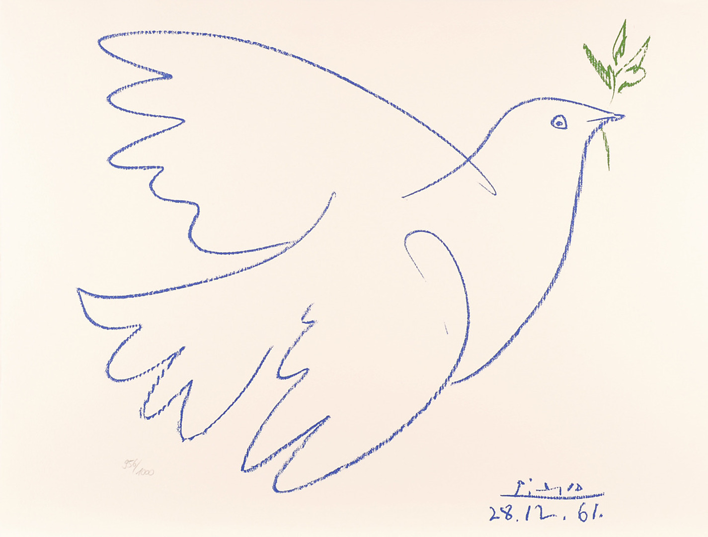 341466. PABLO PICASSO. EFTER. "Fredsduen". Litografi på lagt papir.