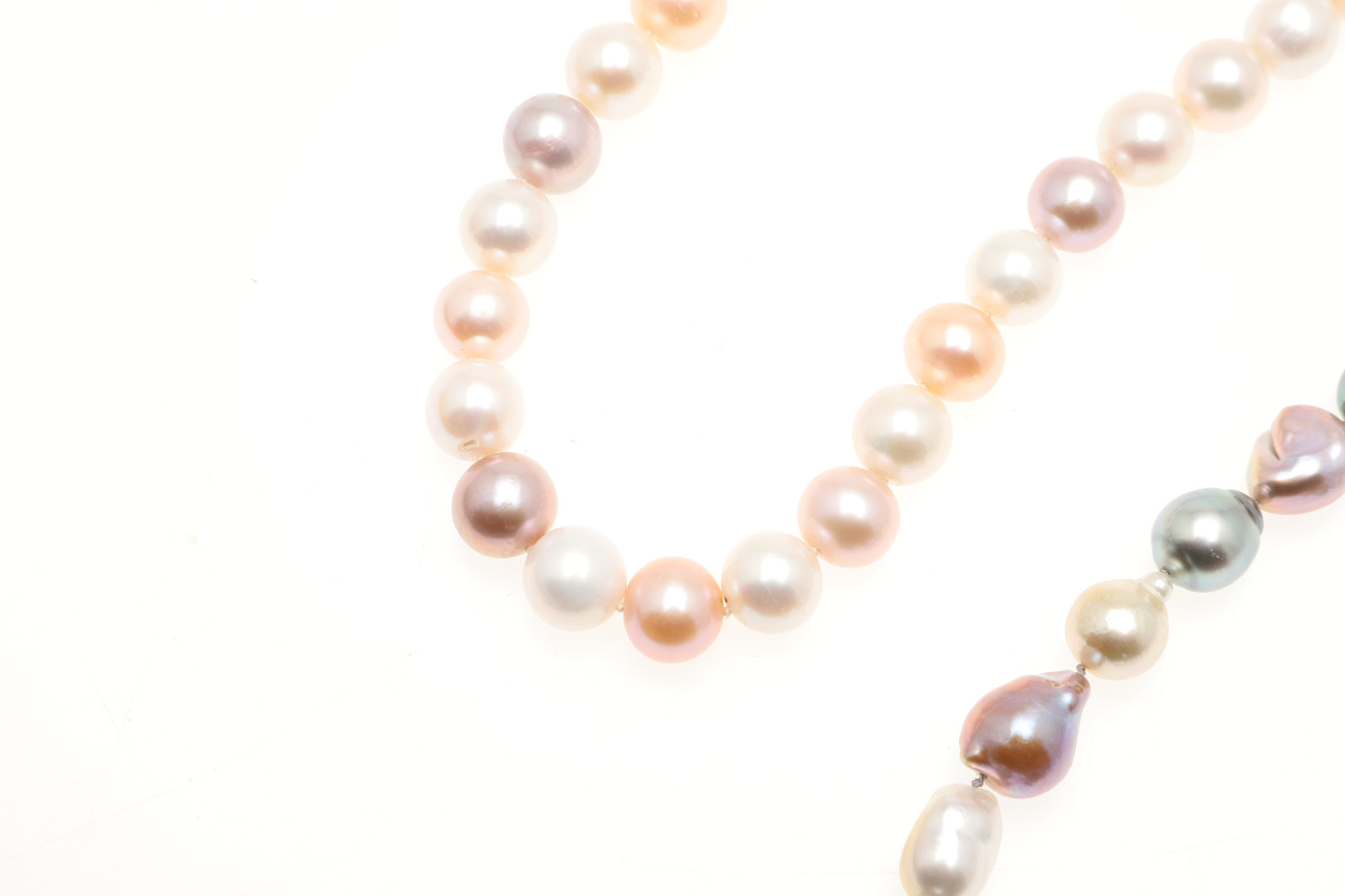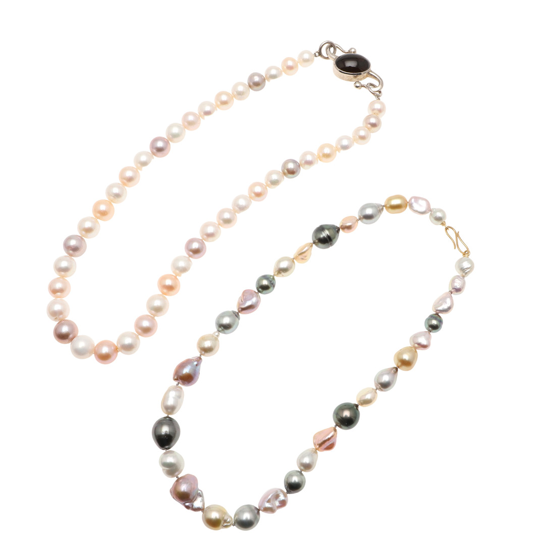 3416742. TO MODERNE KULTIVEREDE PERLEHALSKÆDER.
