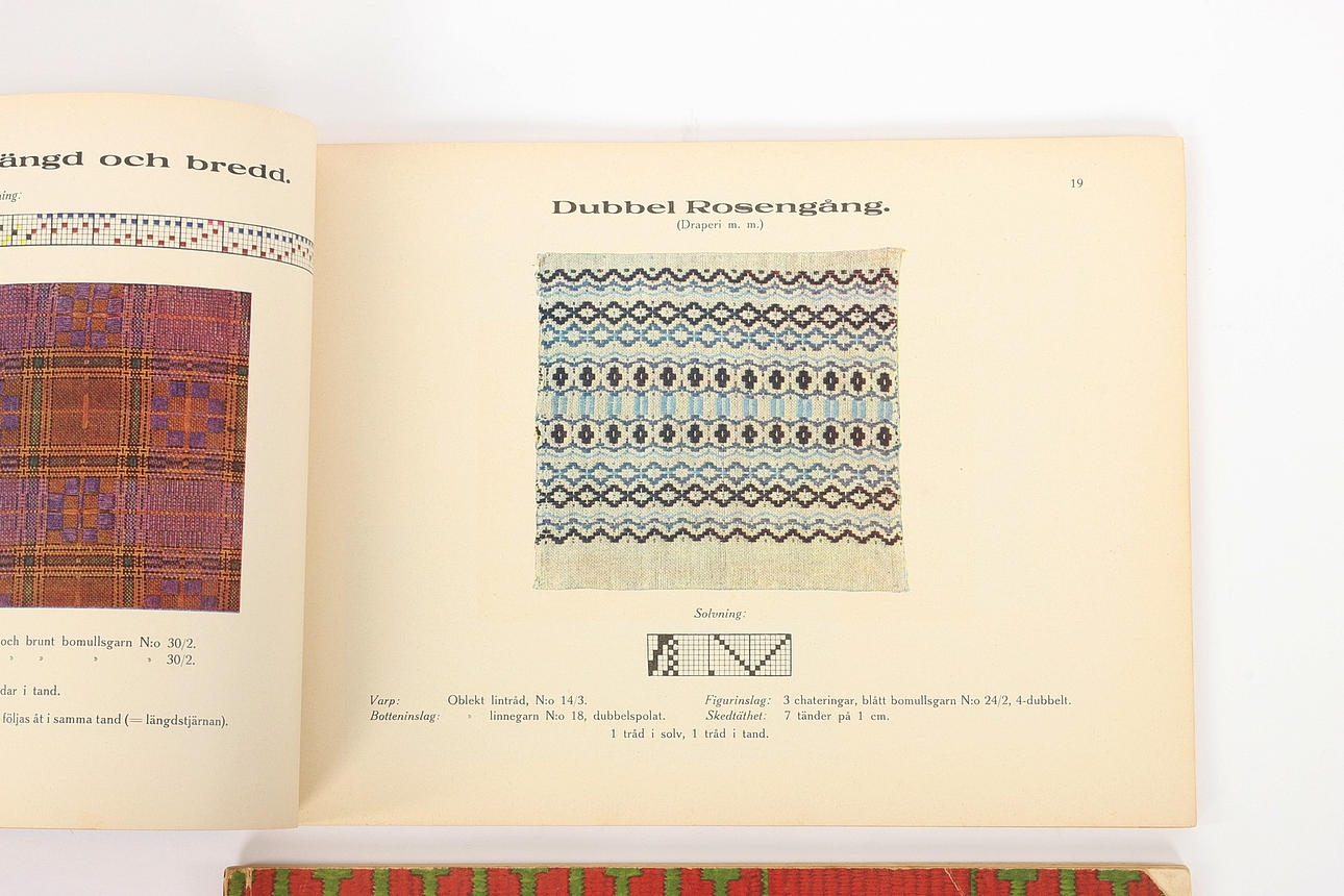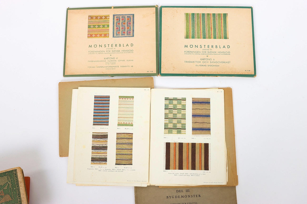 Litteratur, vævning, 17 dele. Bøger, hæfter og mapper. Mønster. Sverige og Norge i midten og før det 20. århundrede.