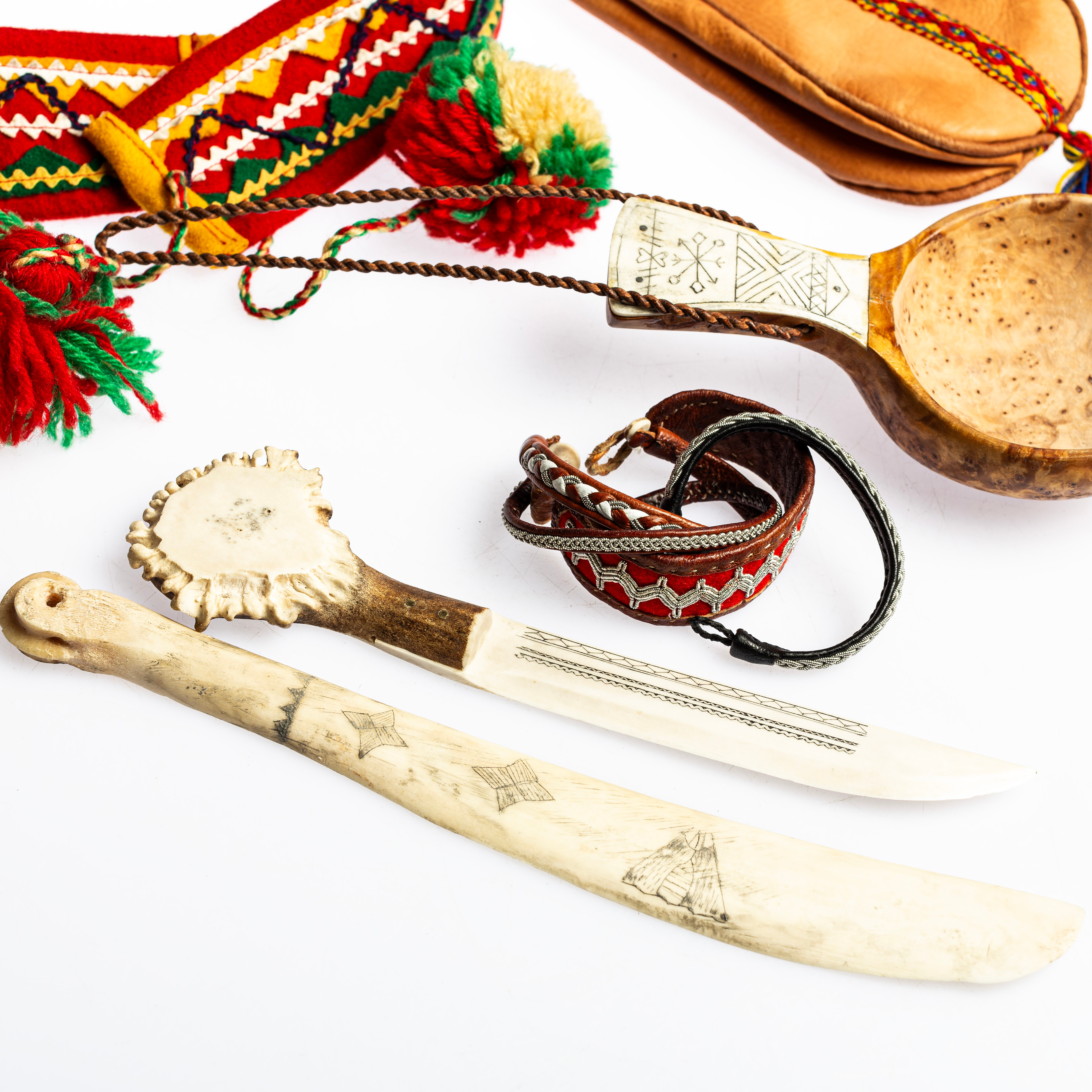 3421488. SAMEOBJECT, 9 stykker med en papirkniv til rensdyrhorn.