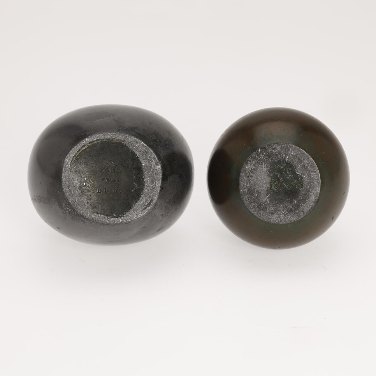 3421885. JUST ANDERSEN. 2 stk. vaser, Just Andersen, tin og diskometal, Danmark, (2).