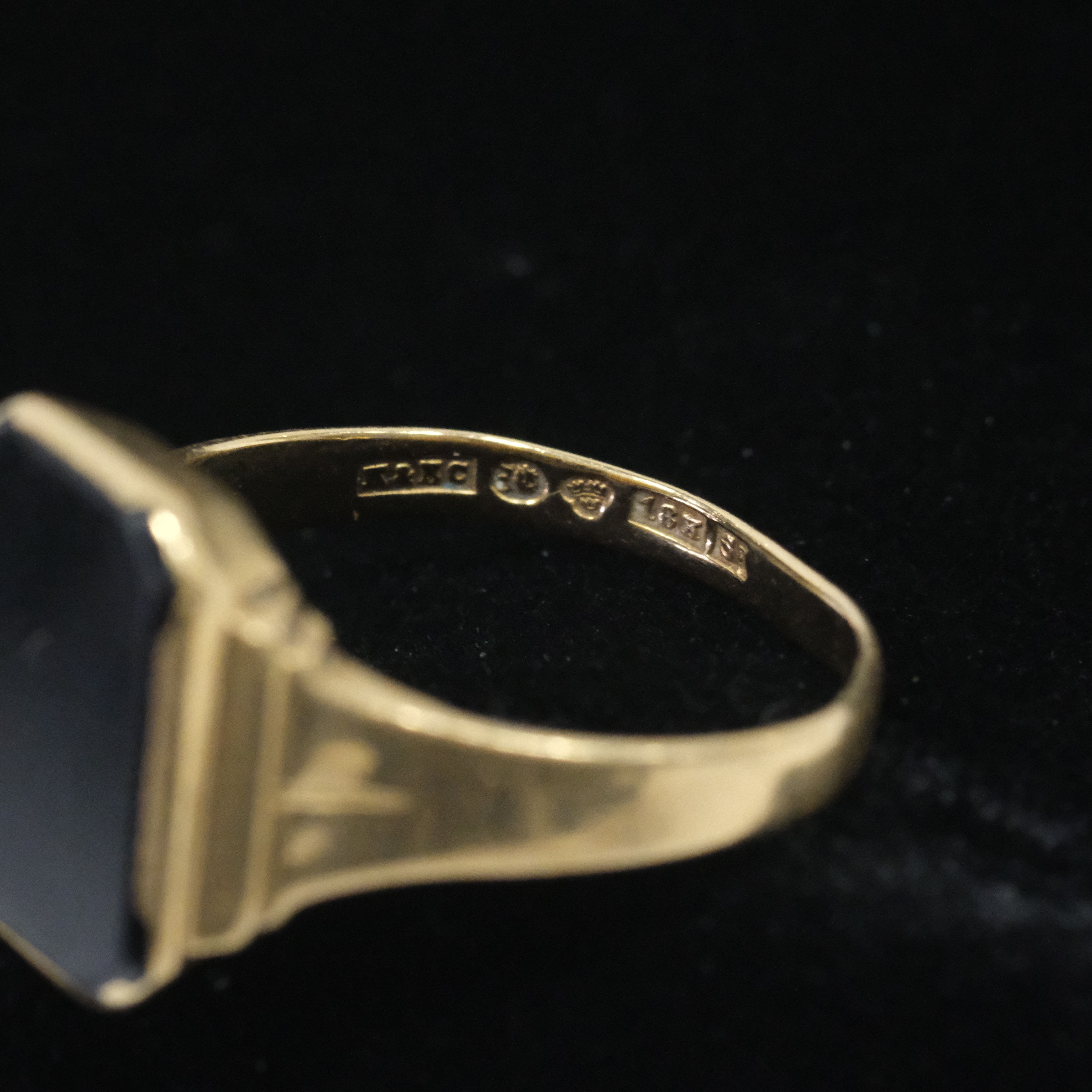3422176. RING, 18KT GULD MED ONYX, GÖTEBORG 1944.