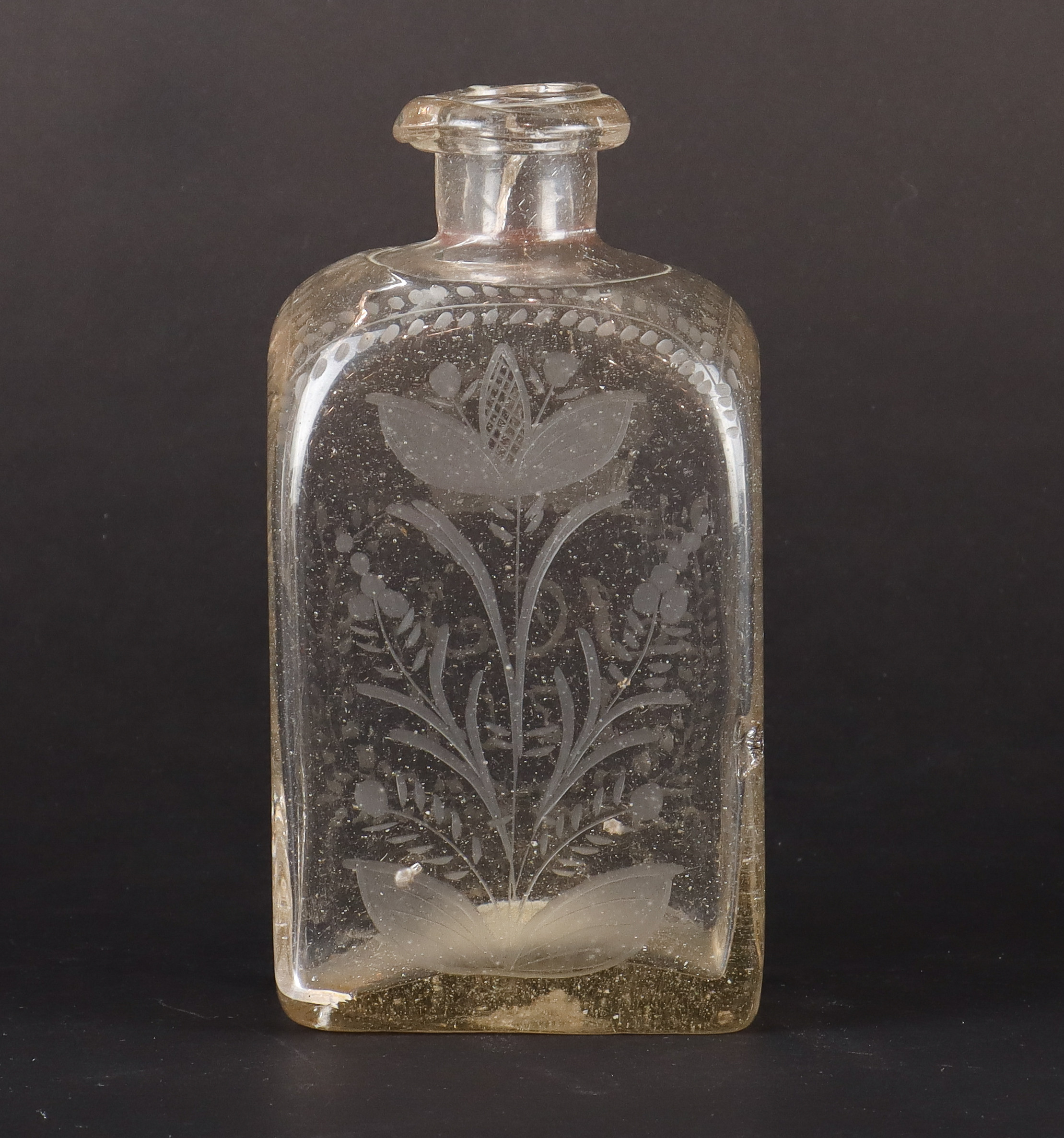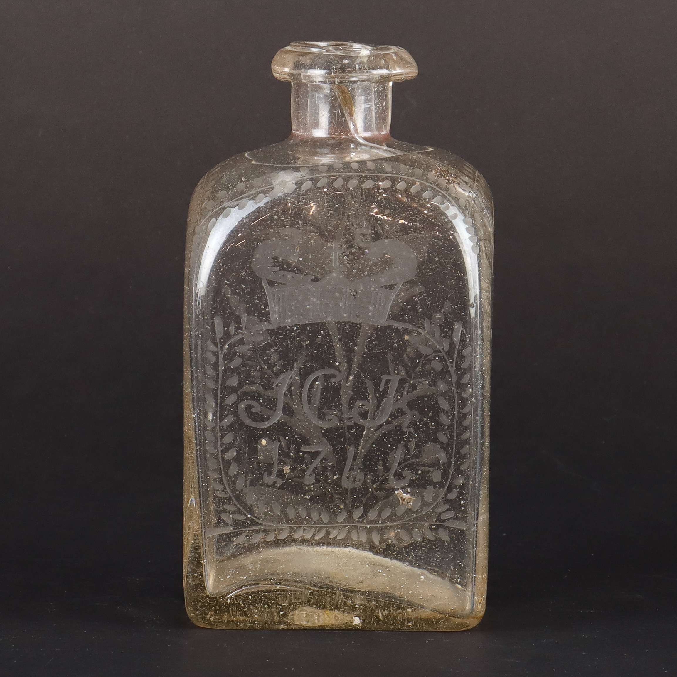 3423025. En antik flaske brandy, dateret 1766.