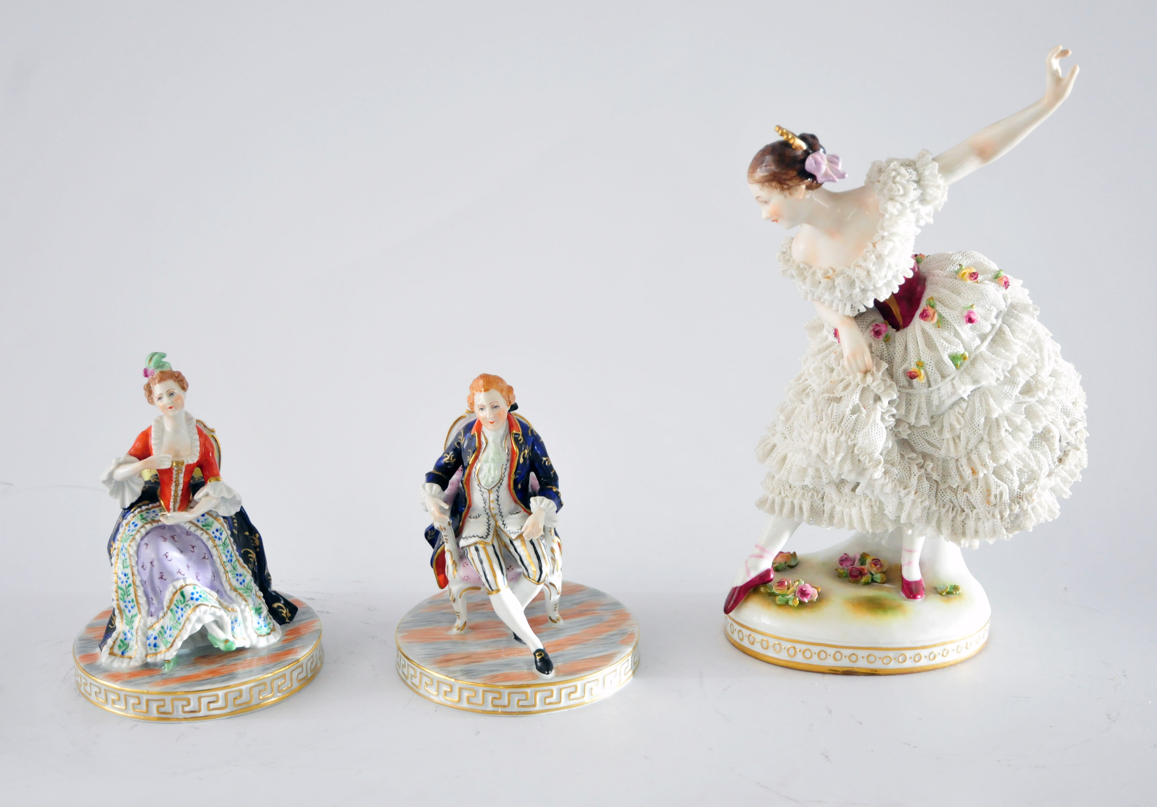 34278. FIGURER, 3 stk, inklusive Dresden, 1900-tallet.