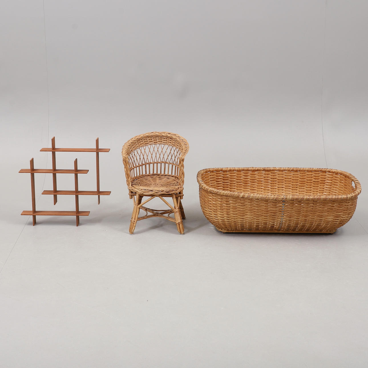 Børnekurvstol første halvdel af det 20. århundrede højde 52, sædehøjde 26, bredde 37 cm.