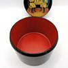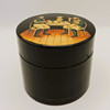 En håndmalet tøndeformet låget russisk lakkasse/tekasse 7 cm høj 8 cm diameter.