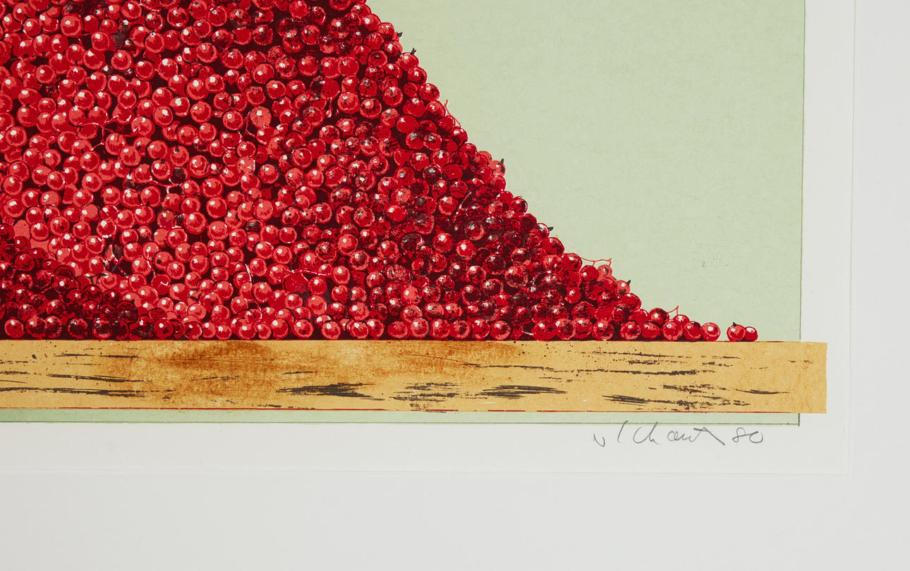 Farvesigraf, 1980, signeret med blyant og påskrevet 'Probe druck', et bevis bortset fra den nummererede udgave af 90, trykt af Ingvar Landberg, udgivet af Bo Alveryd.