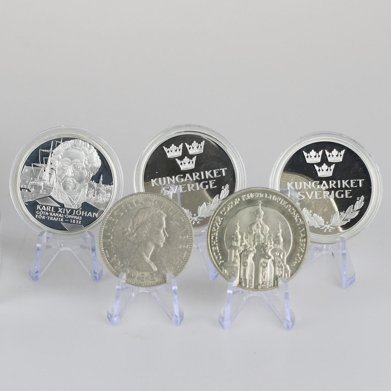 1 stk. mønt Karl XIV Johan Göta Kanal, sølv 925, 27 gr.