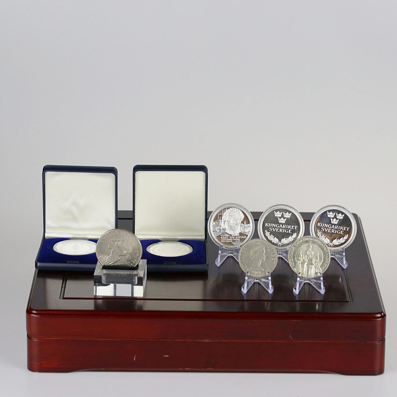 3431820. MINDEMØNTER, 8 stk. delvis sølv, se beskrivelse.