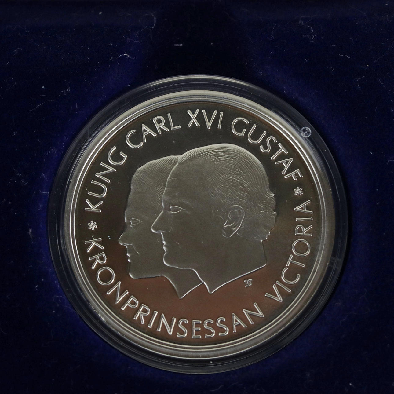 1 stk. mønt 200 kr, Kong Carl Gustaf og Kronprinsesse Victoria, sølv 925, 27 gr.