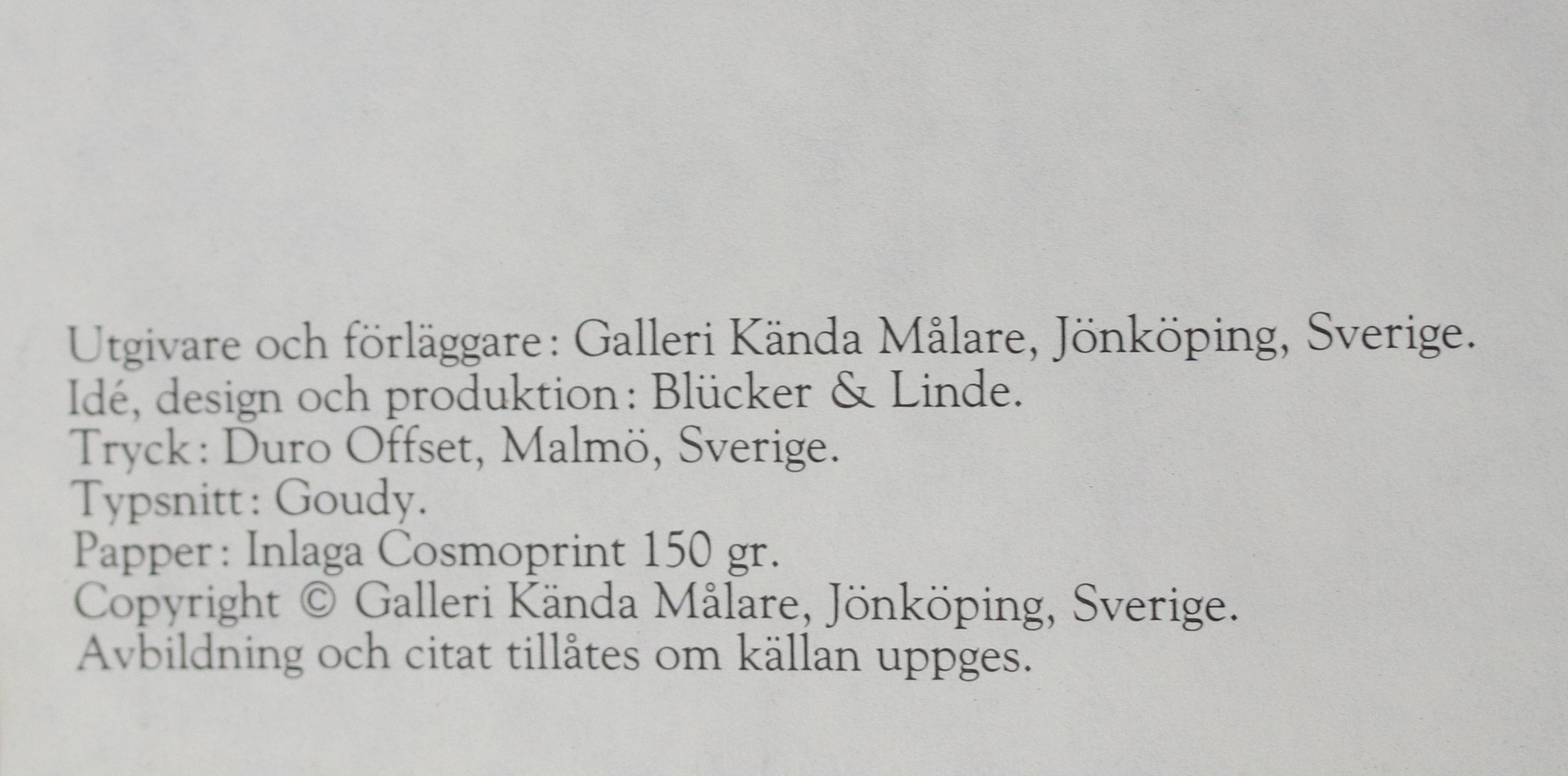 3432610. BENGT LINDSTRÖM. Bog, Galleri berømte malere, Jönköping, Sverige.