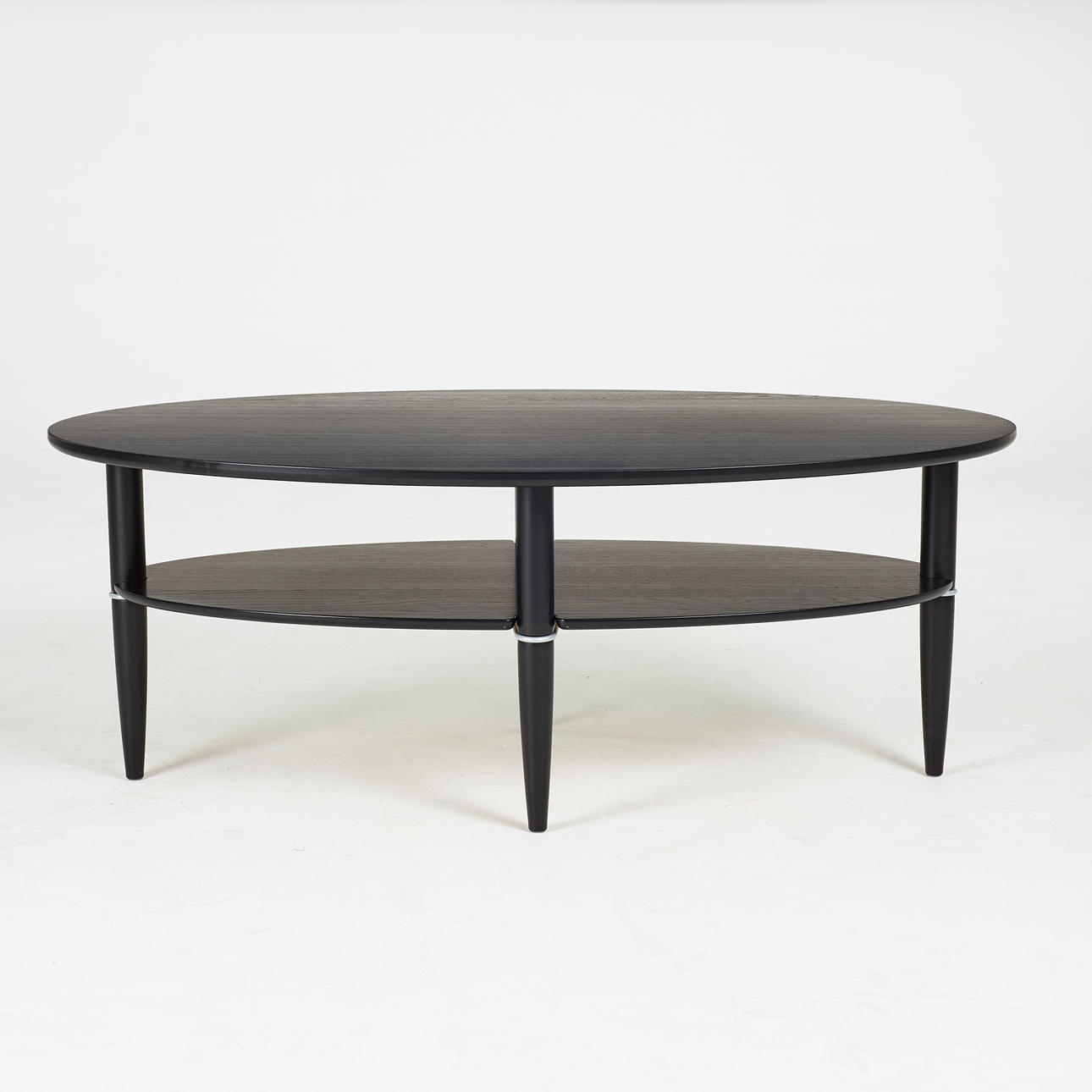 3433283. Et moderne sofabord, model „Madrid“, til Bord Birger, oval, sortbejdset eg.